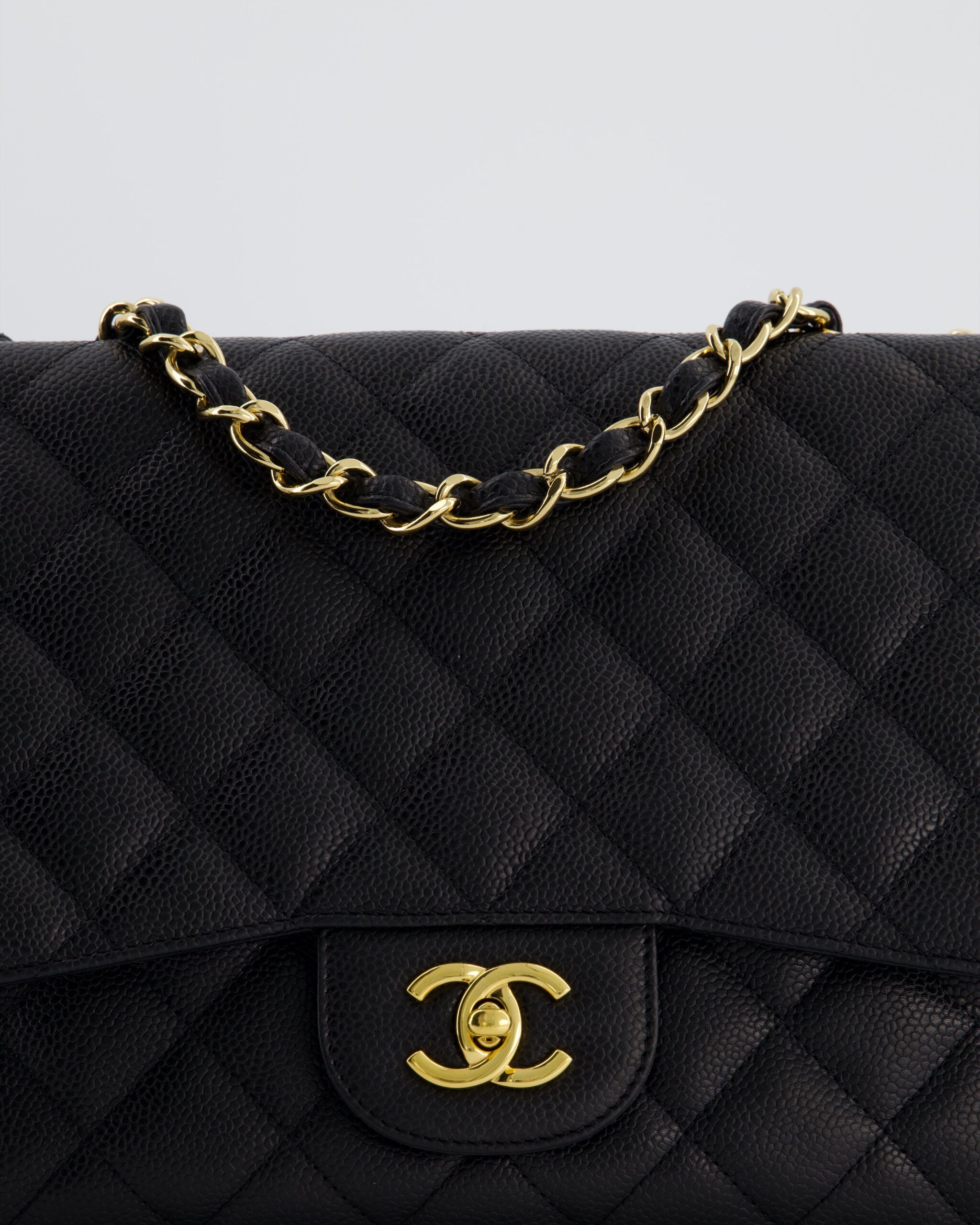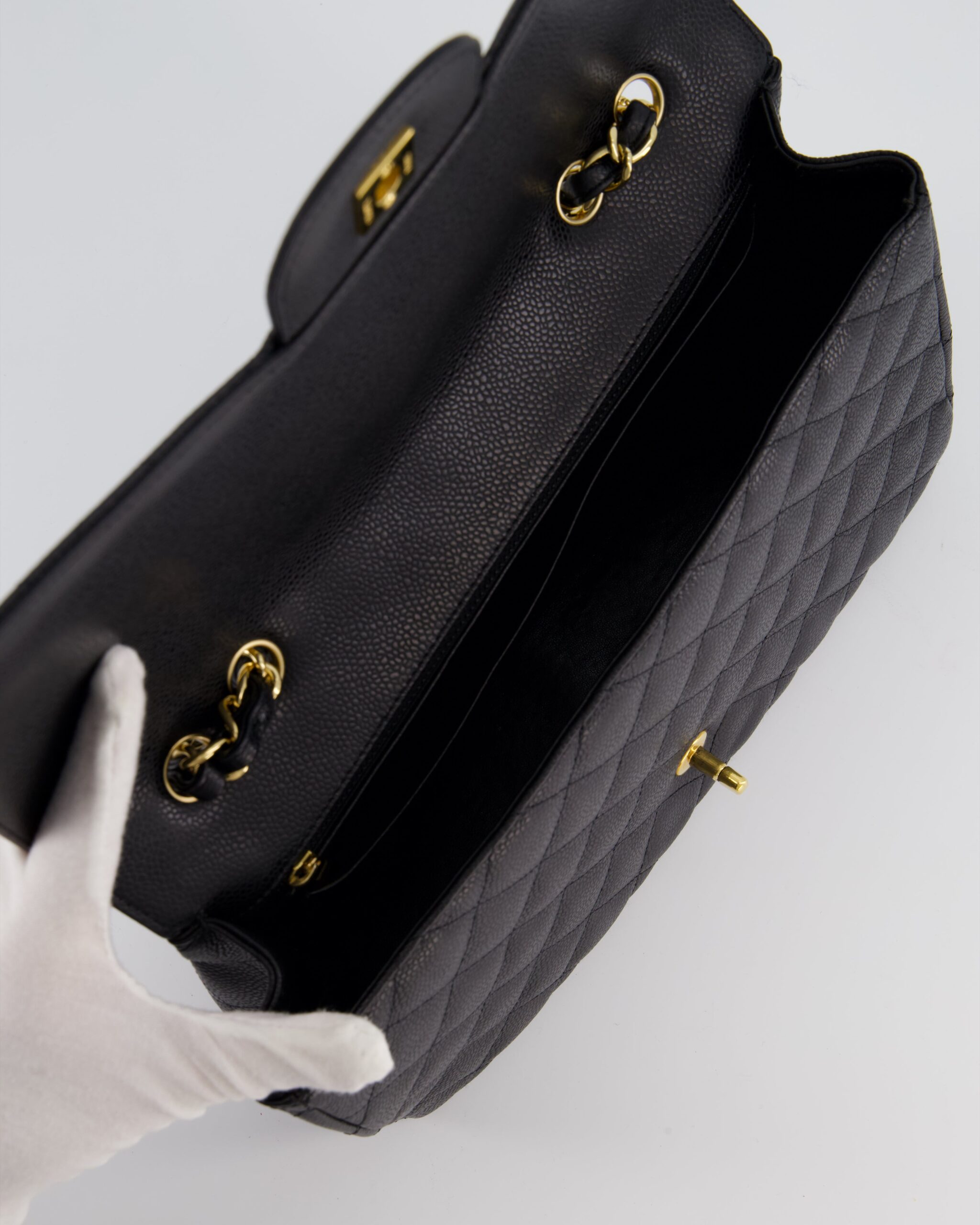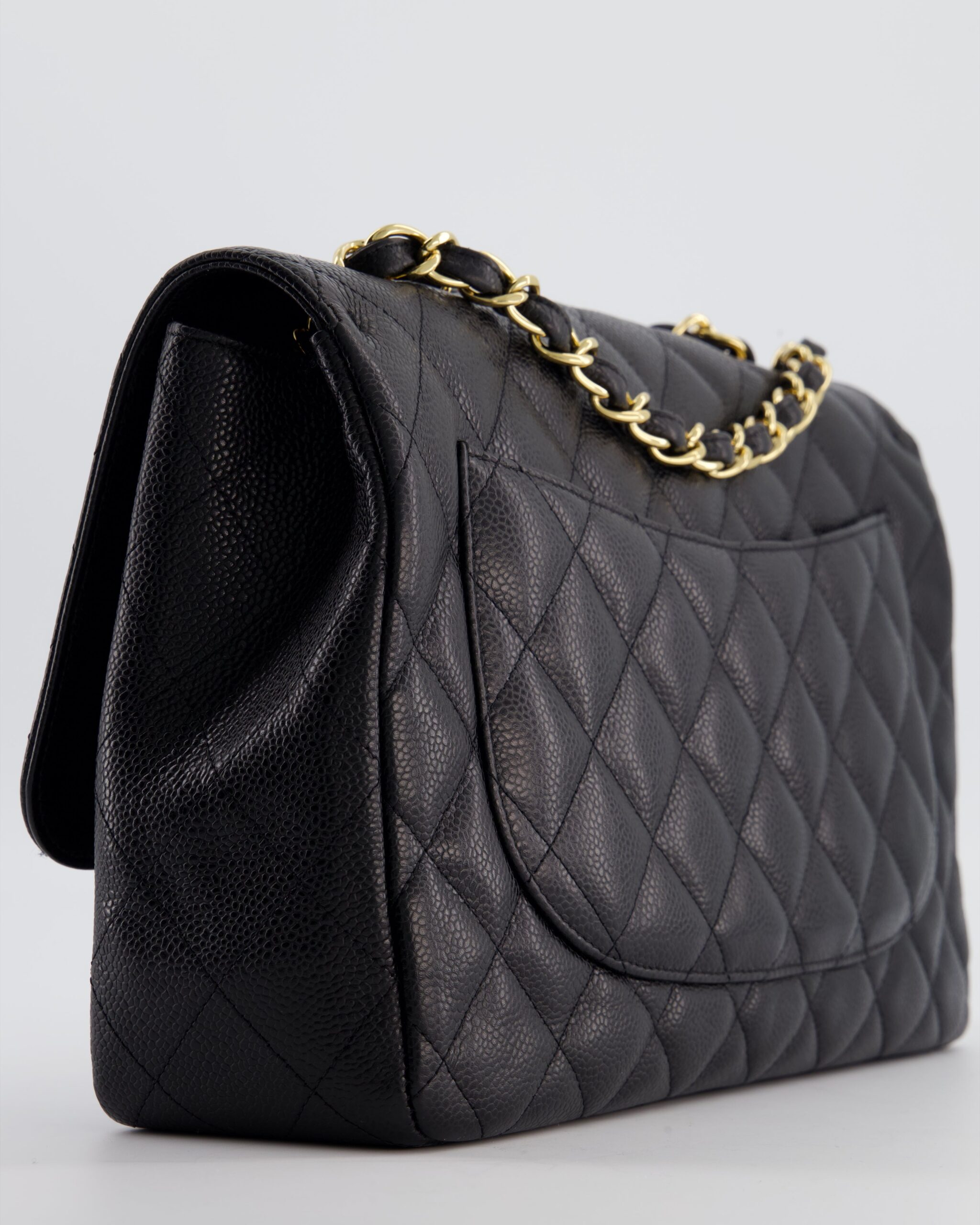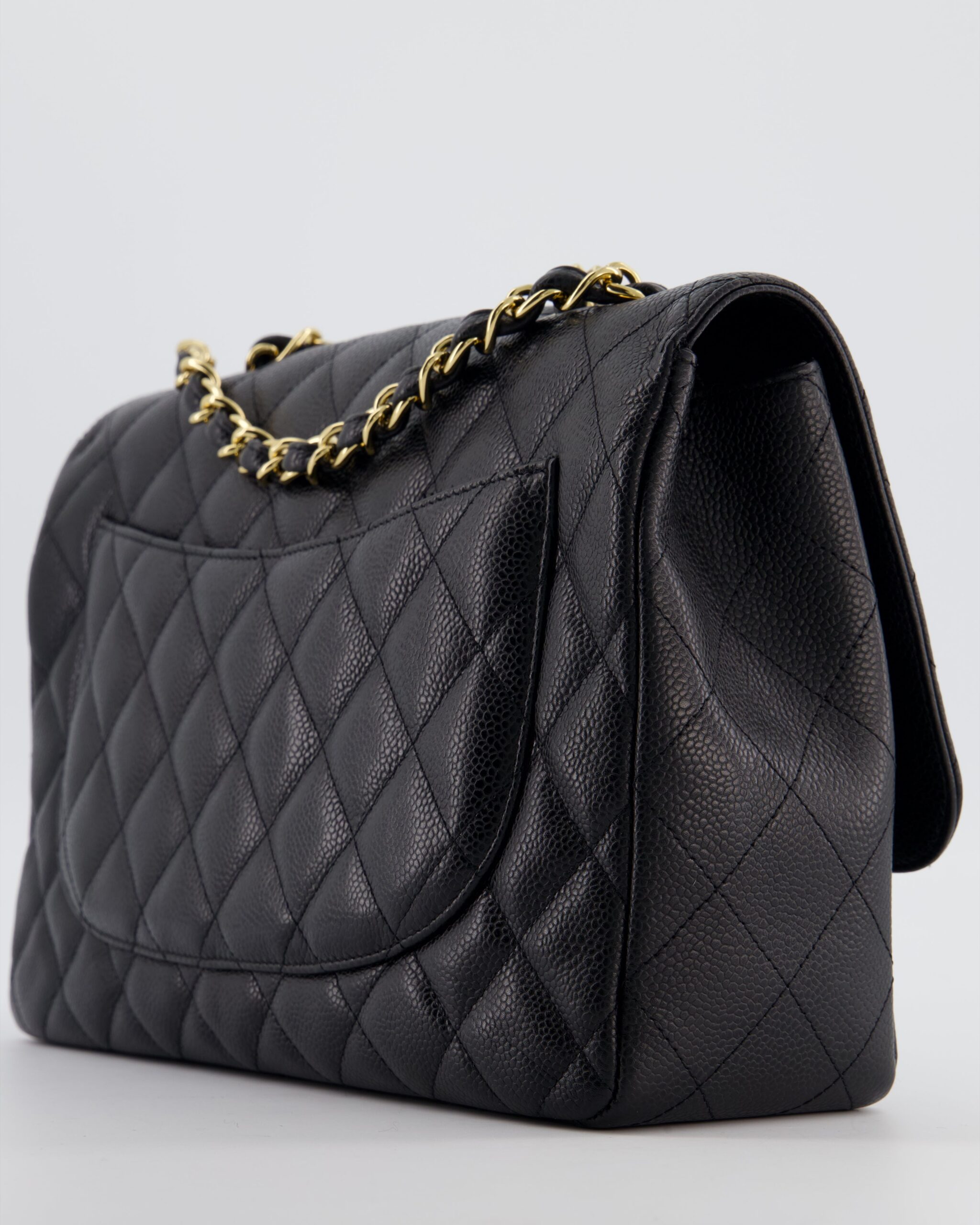 Chanel Black Jumbo Classic Single Flap Bag in Caviar Leather with Gold Hardware