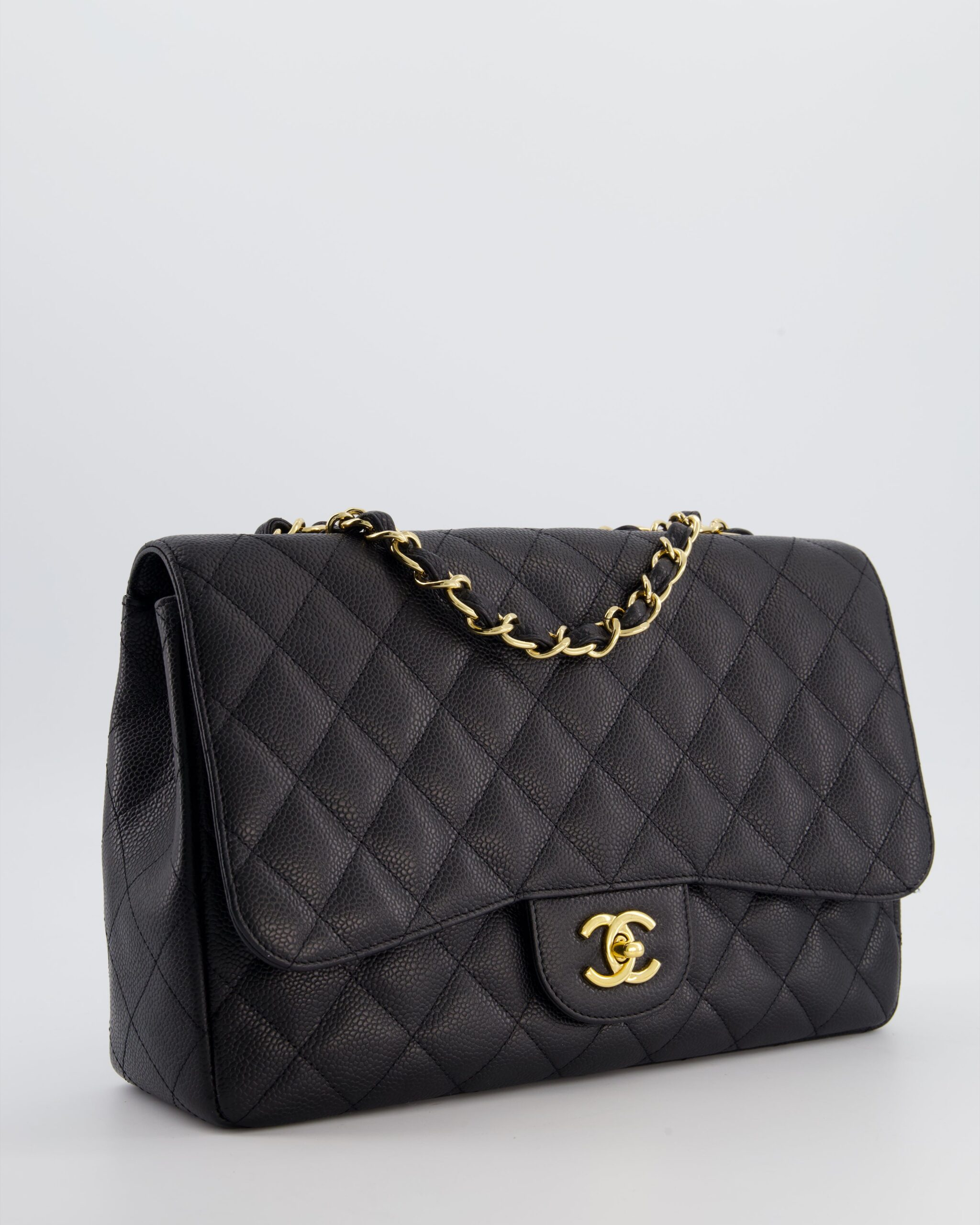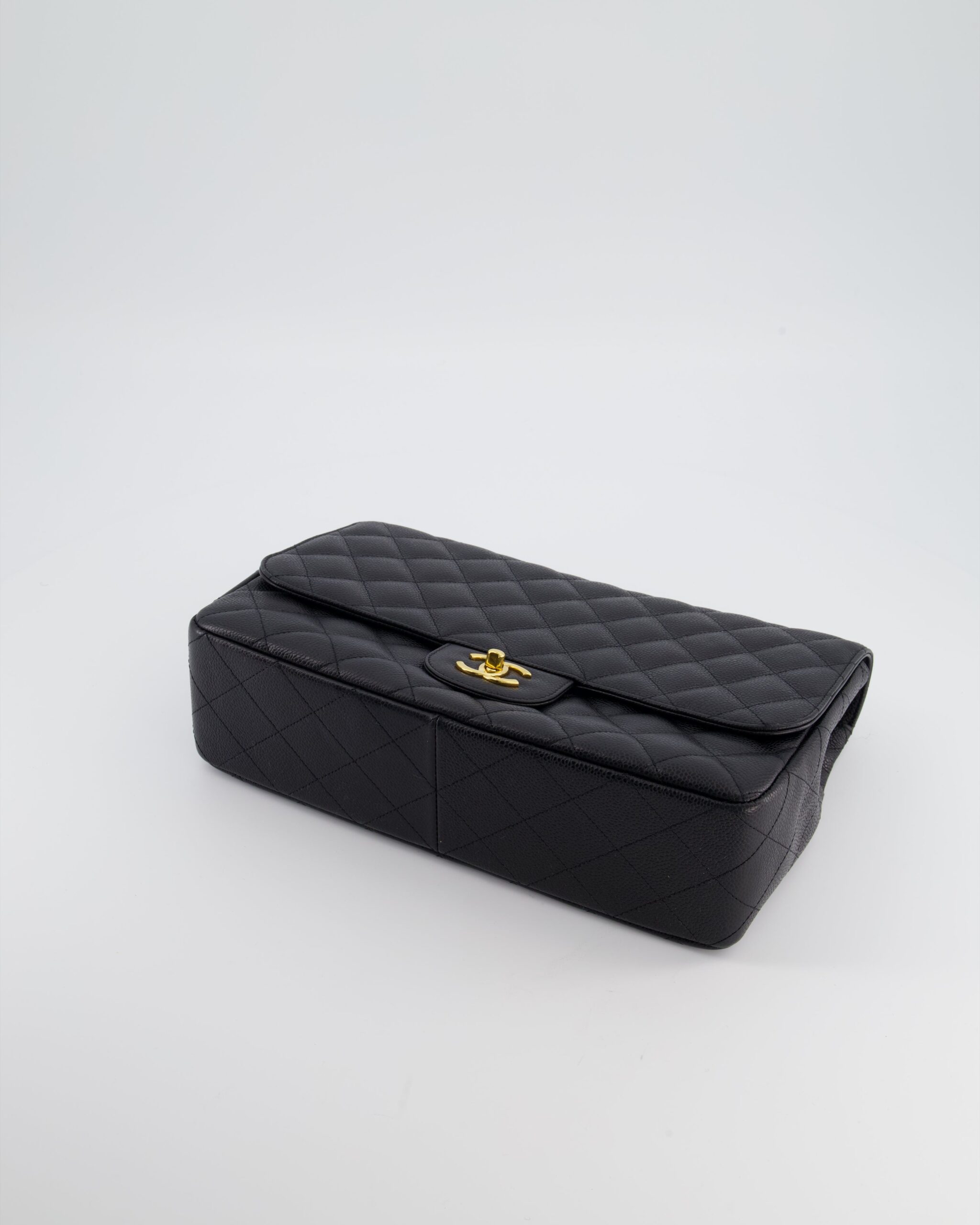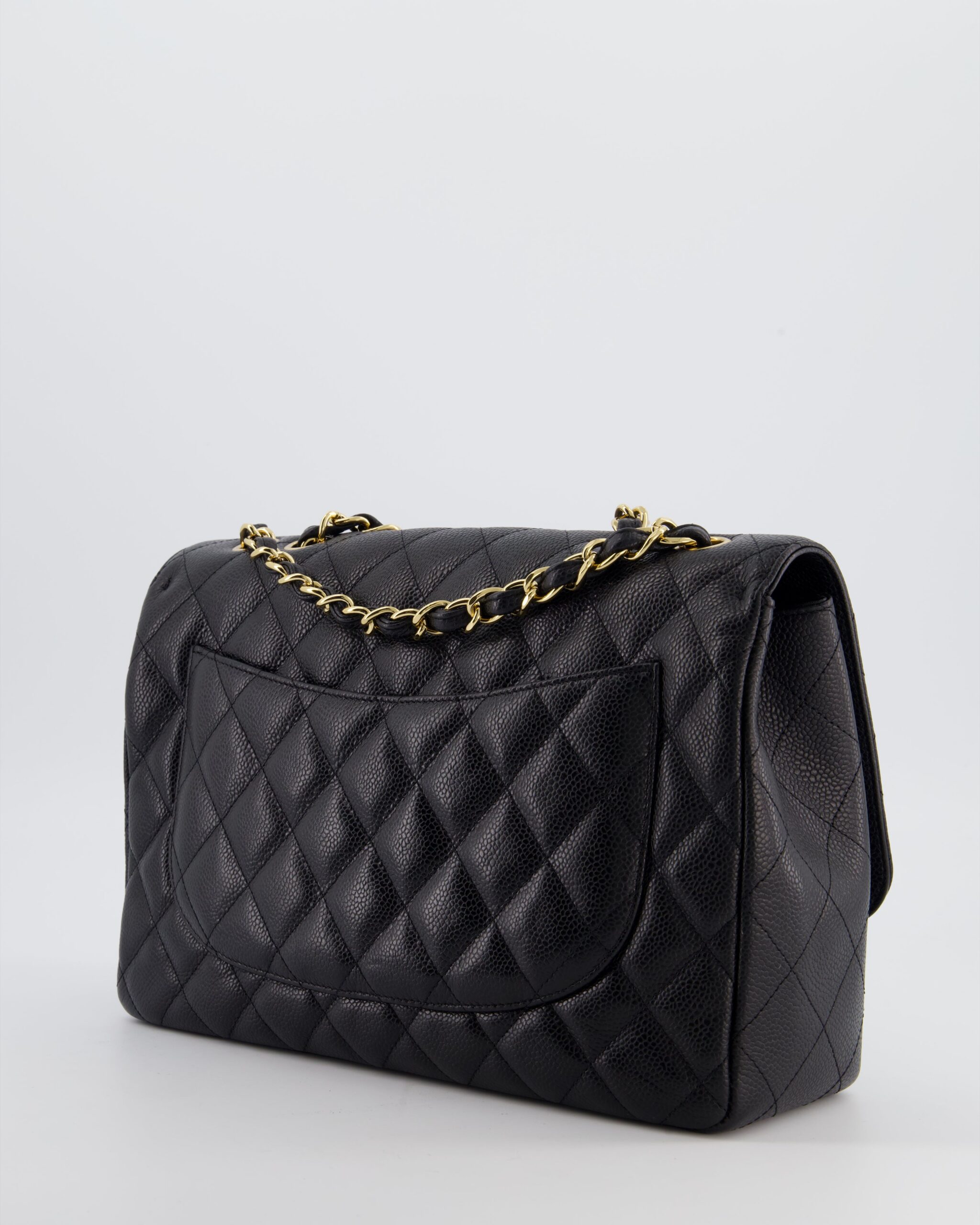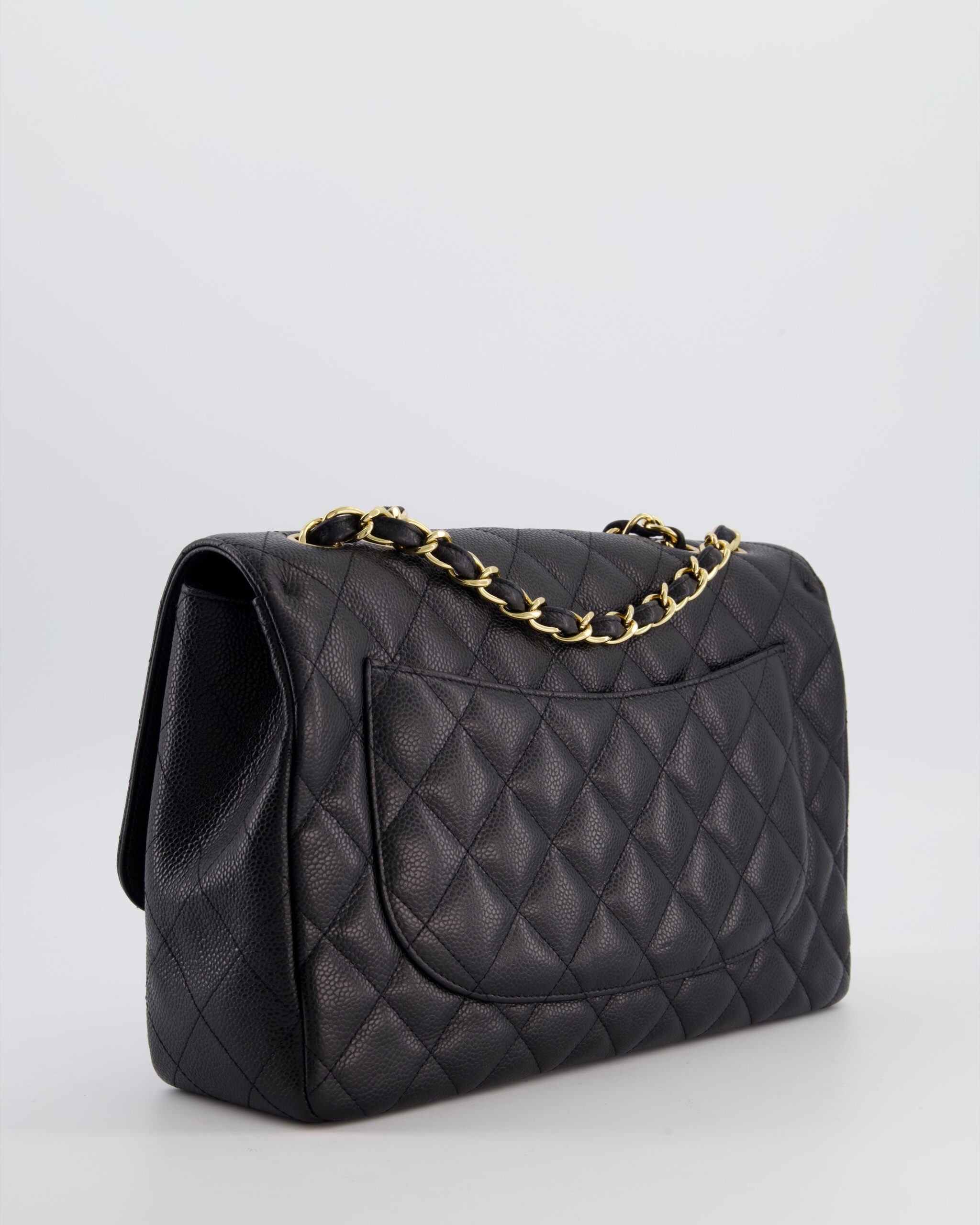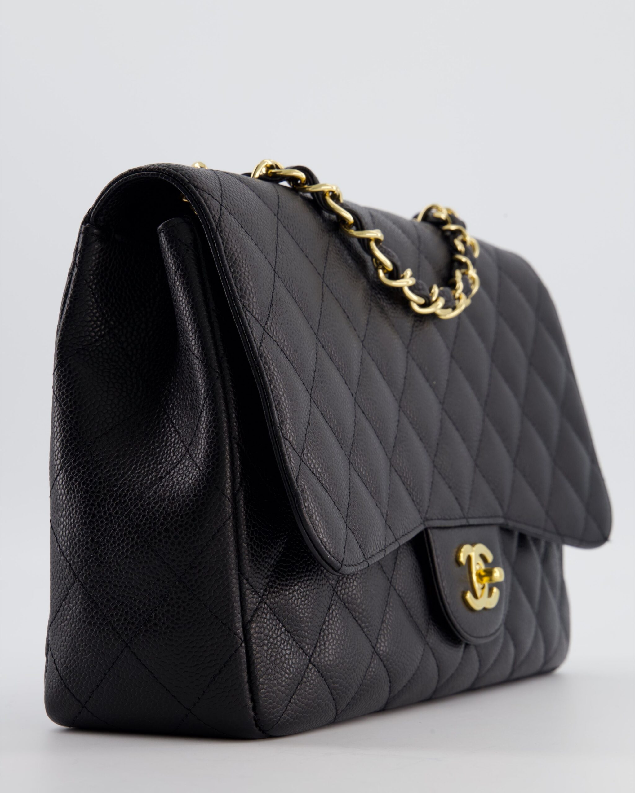 Chanel Black Jumbo Classic Single Flap Bag in Caviar Leather with Gold Hardware