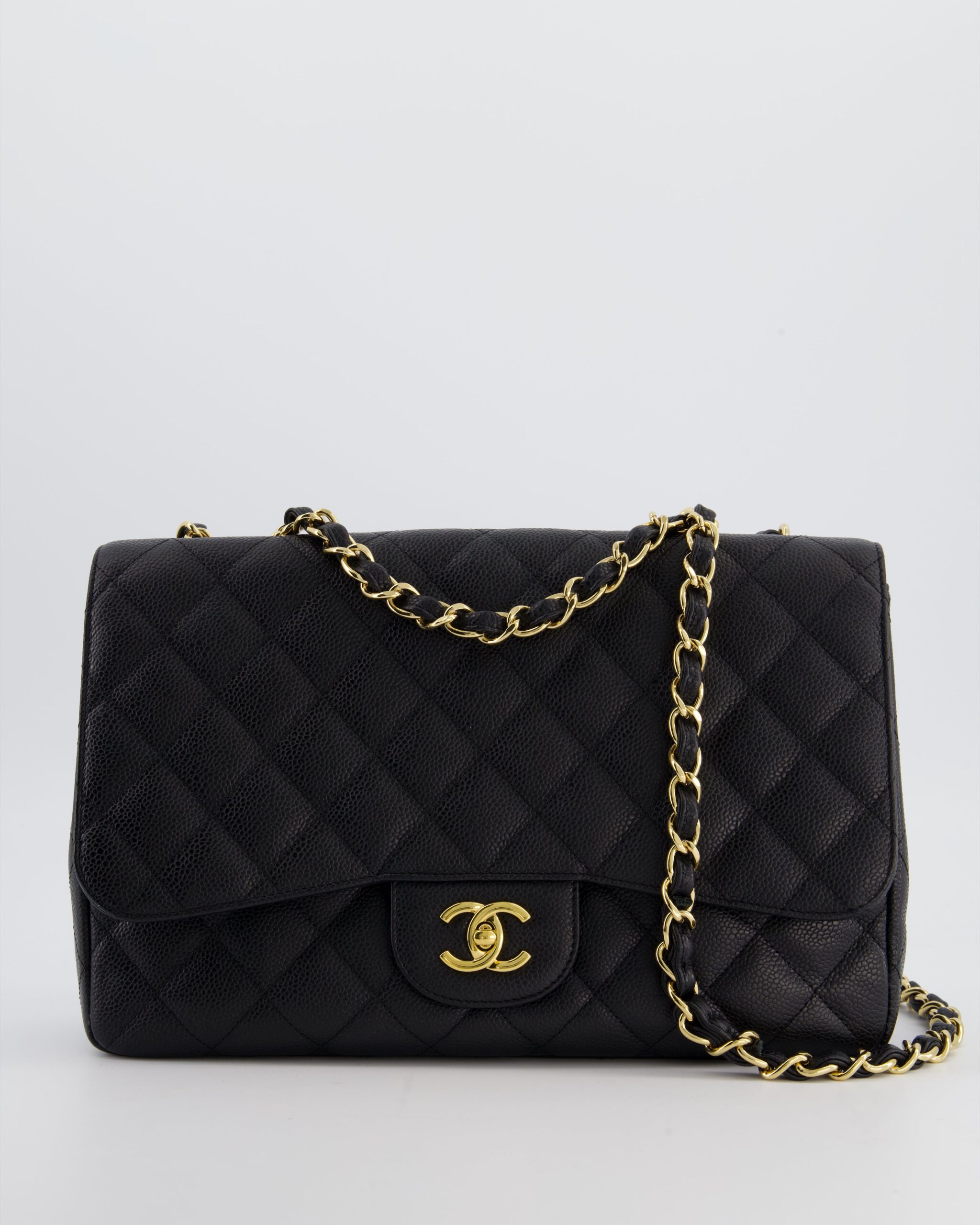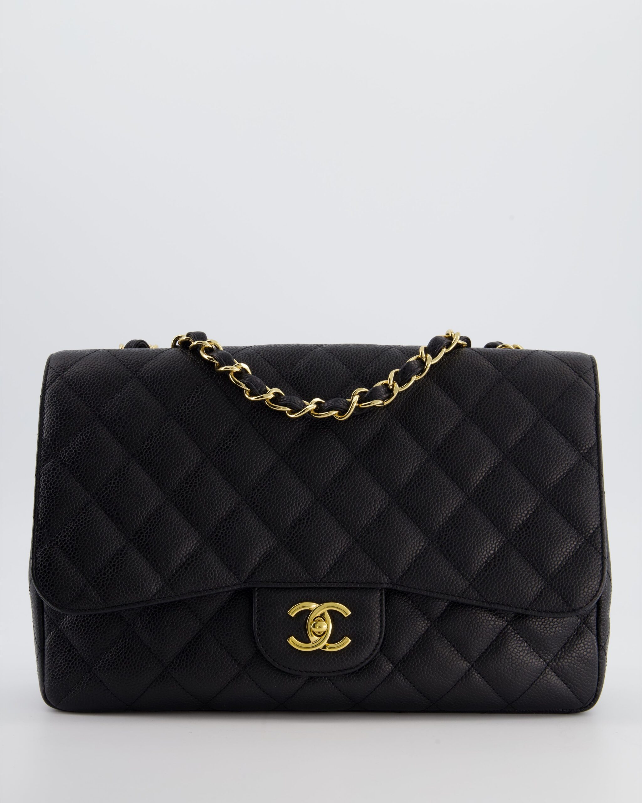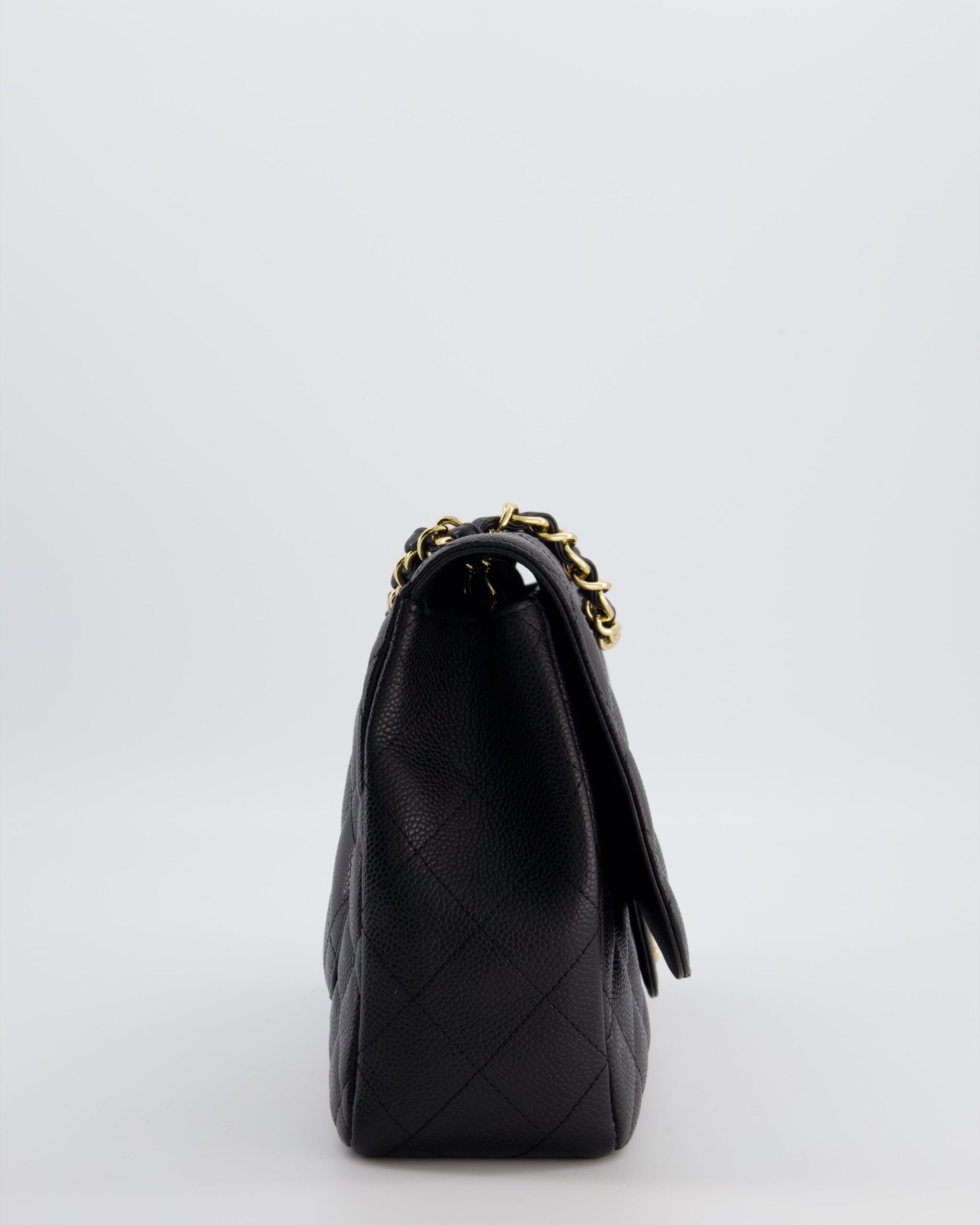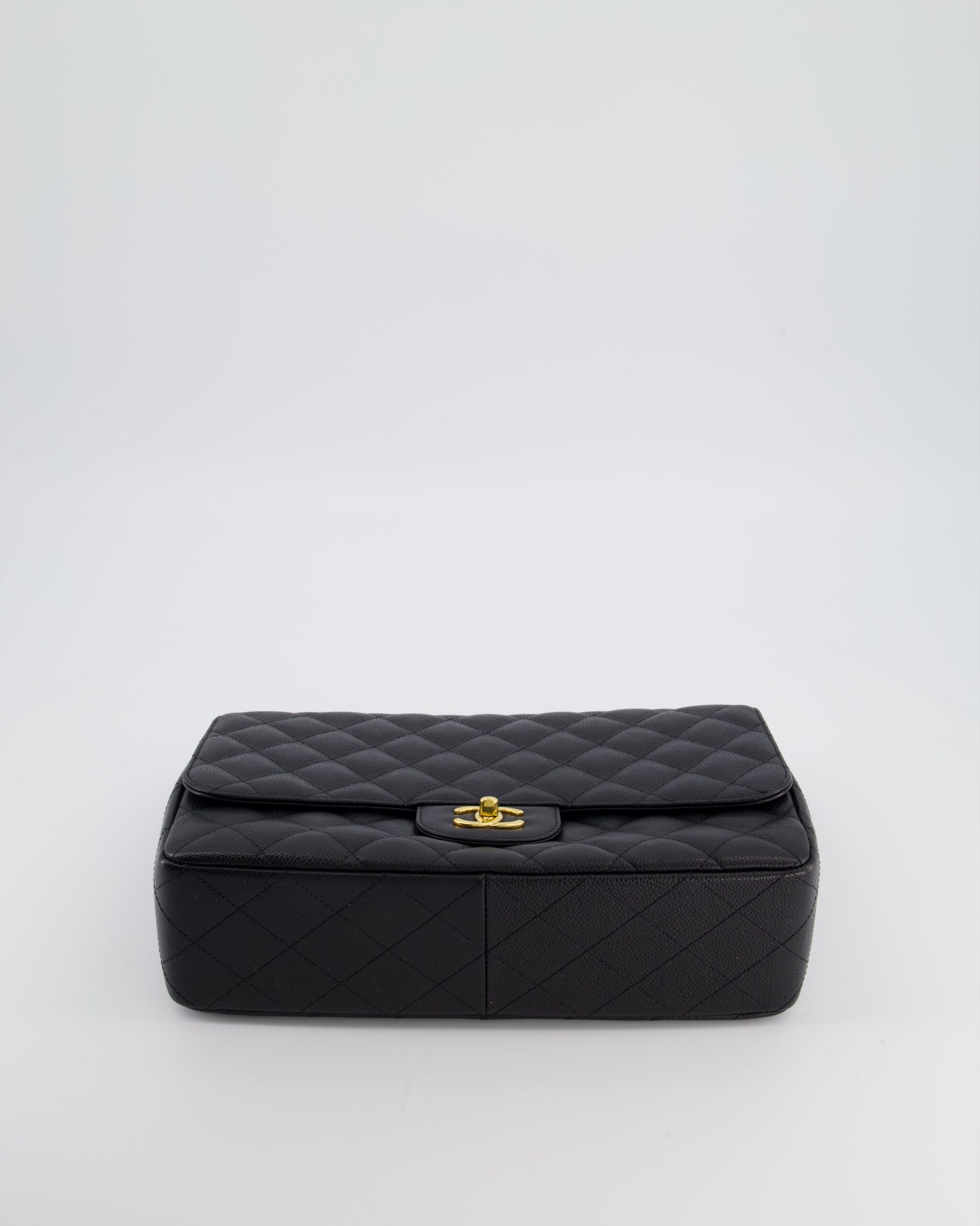 Chanel Black Jumbo Classic Single Flap Bag in Caviar Leather with Gold Hardware