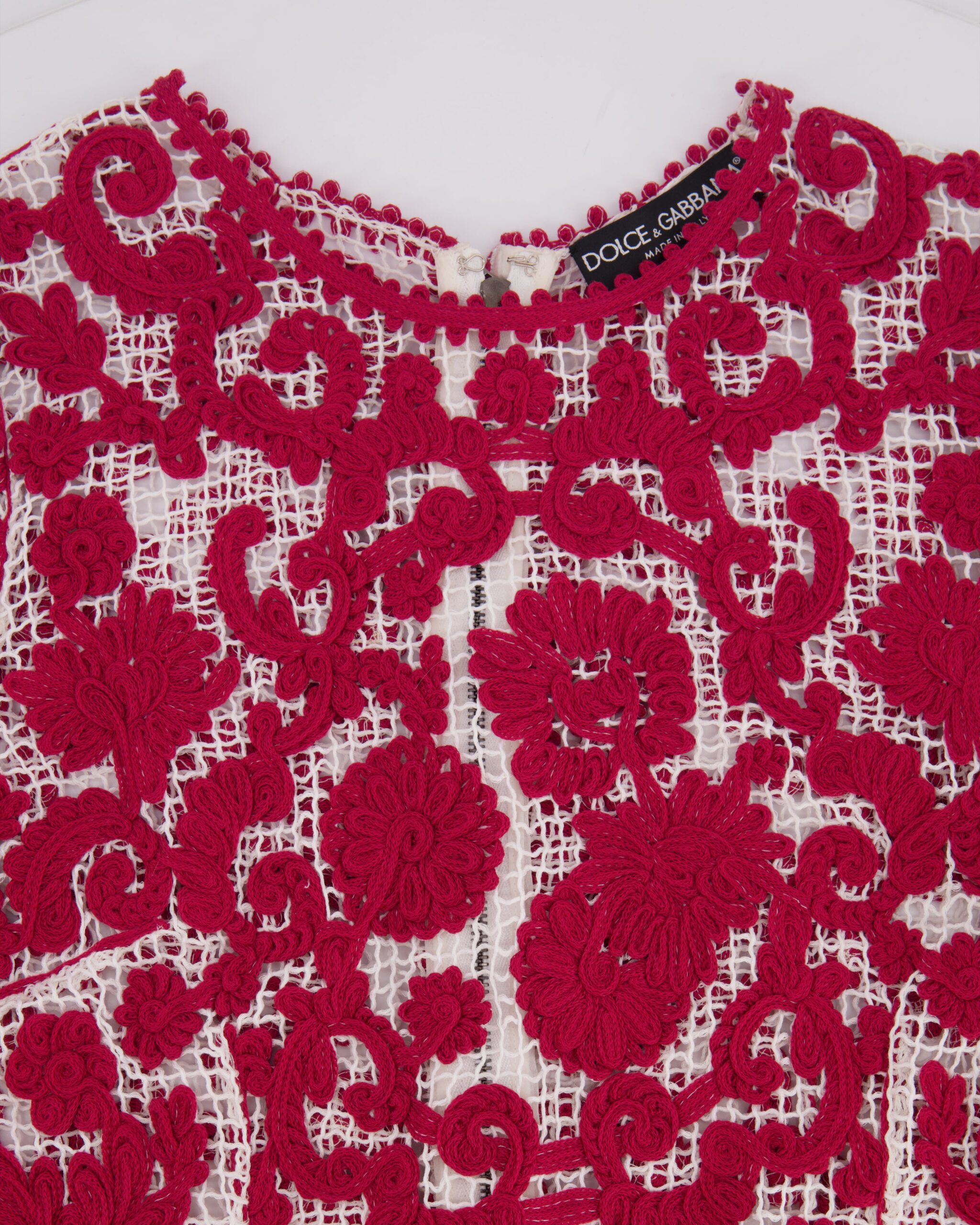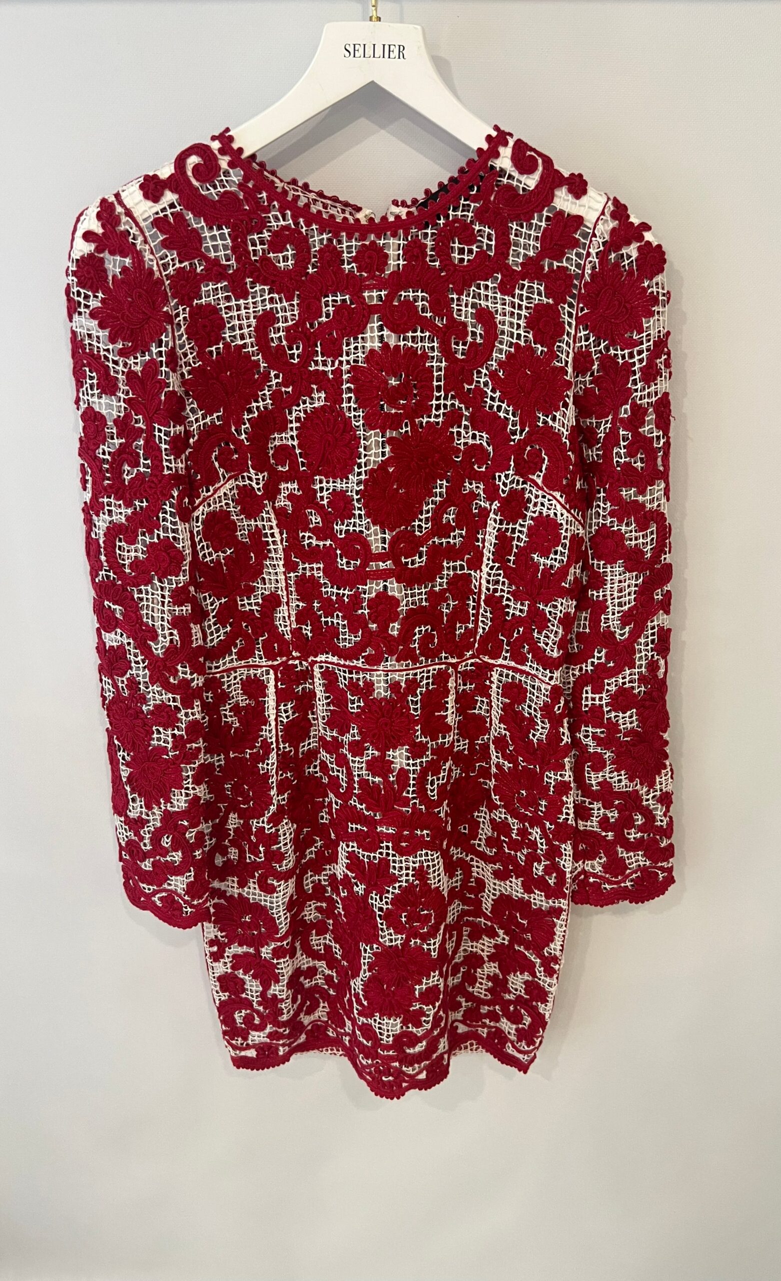 Dolce & Gabbana Red and White Crochet Long Sleeved Mini Dress Size IT 42 (UK 10)
