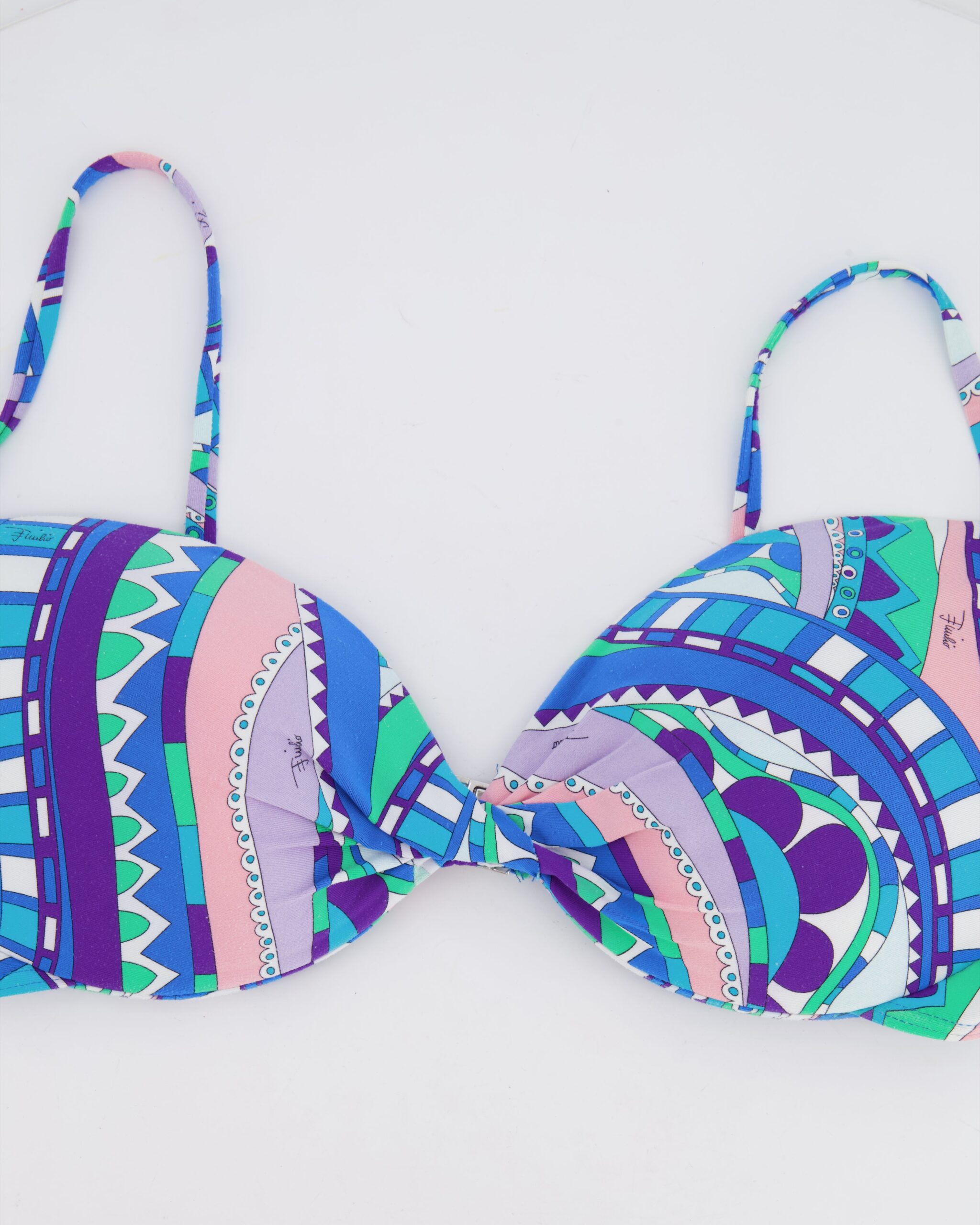 Emilio Pucci Blue and Multicolour Two Piece Bikini Set Size IT 44 (UK 12)