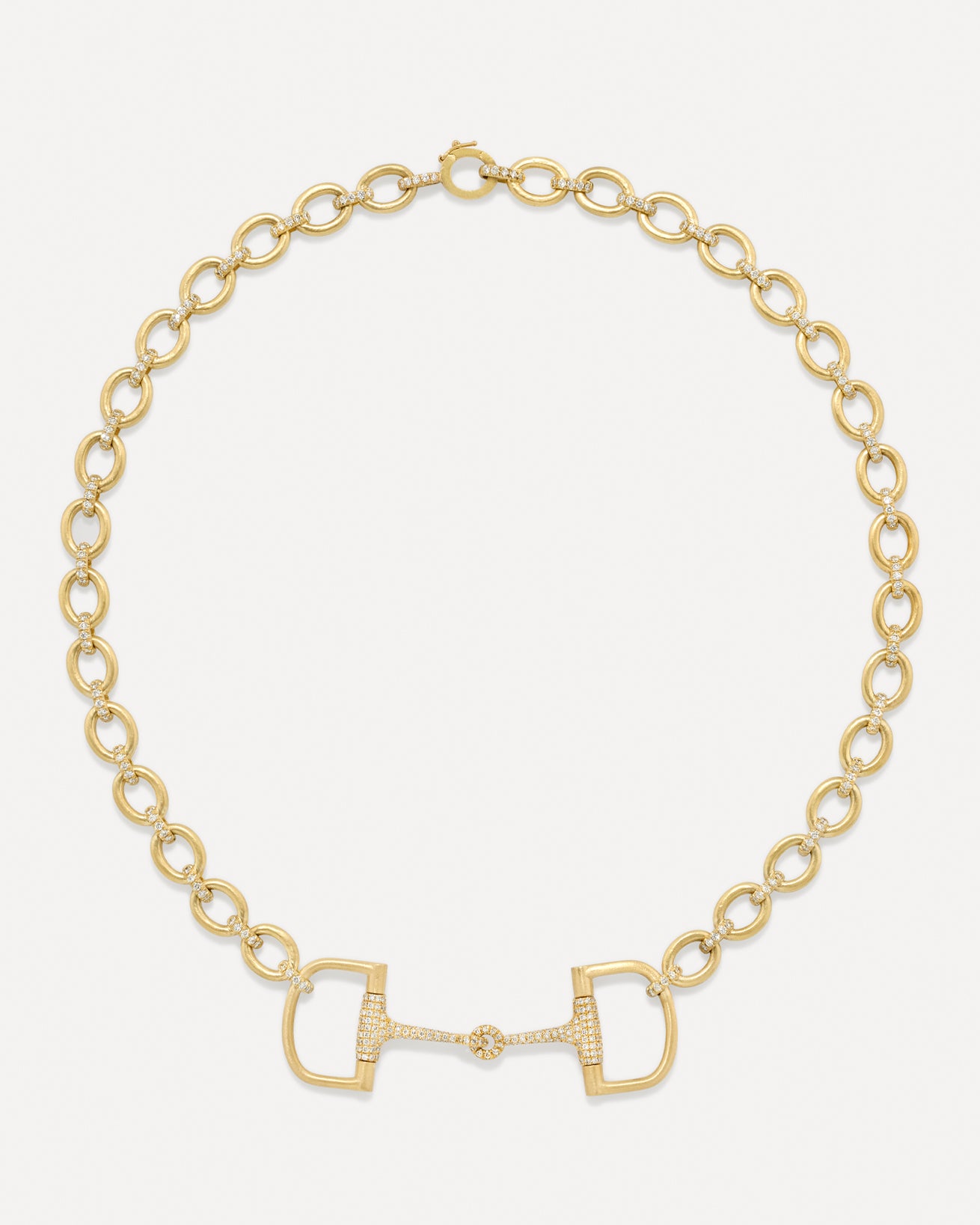 From the Equestrian Collection, a large 18k yellow gold horsebit accented with diamond pavé and finished on our Medium Oval Multi Pavé Link Chain Necklace.