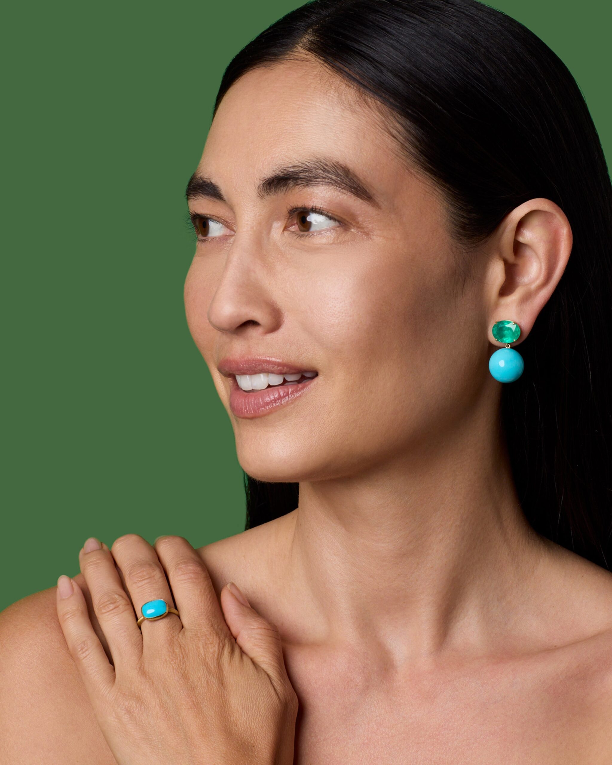 From the One of a Kind Collection, an 18k yellow gold ring bezel set with a cushion-cut turquoise cabochon.