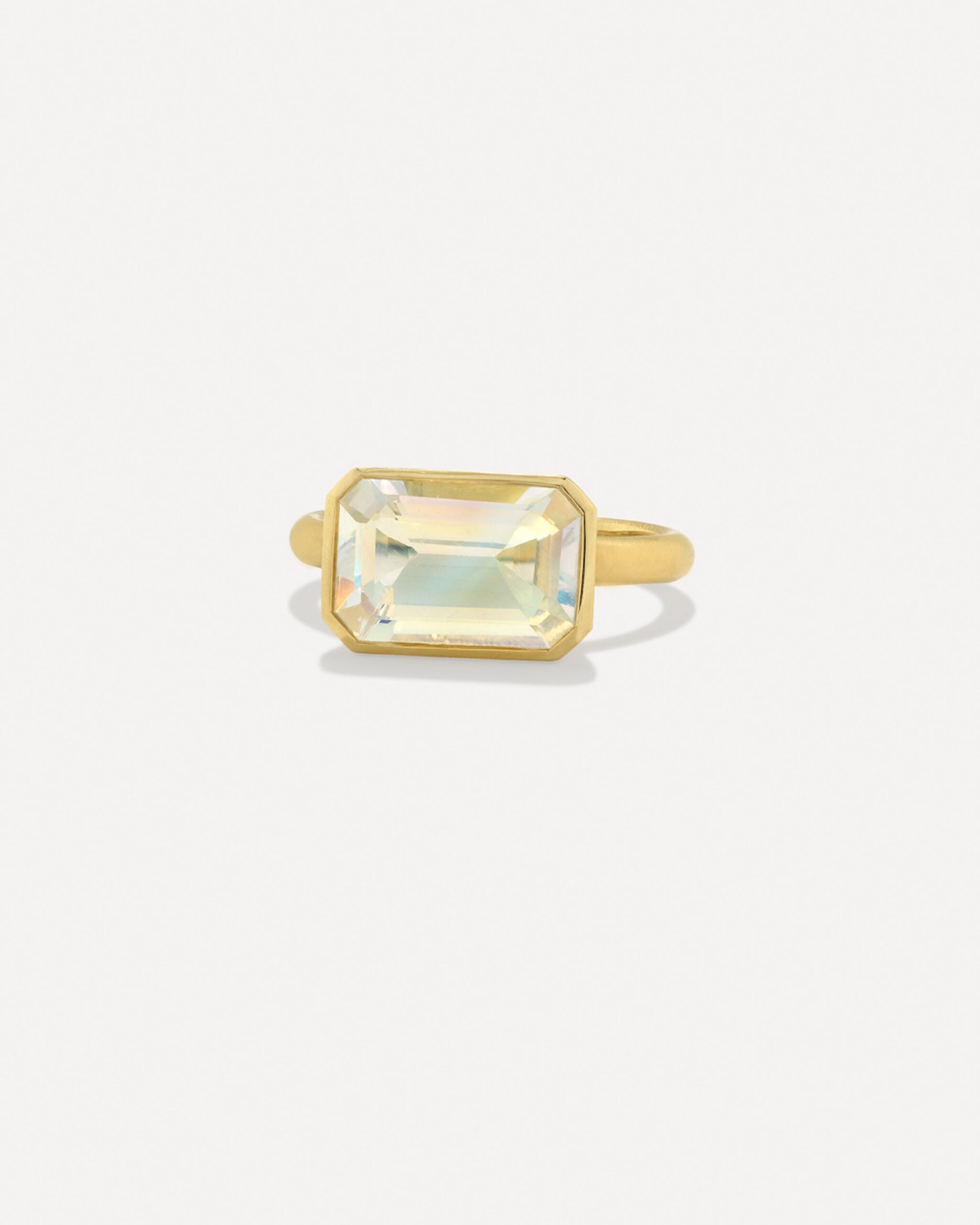 From the One of a Kind Collection, an 18k yellow gold ring bezel set with a beautiful, fine rainbow moonstone.