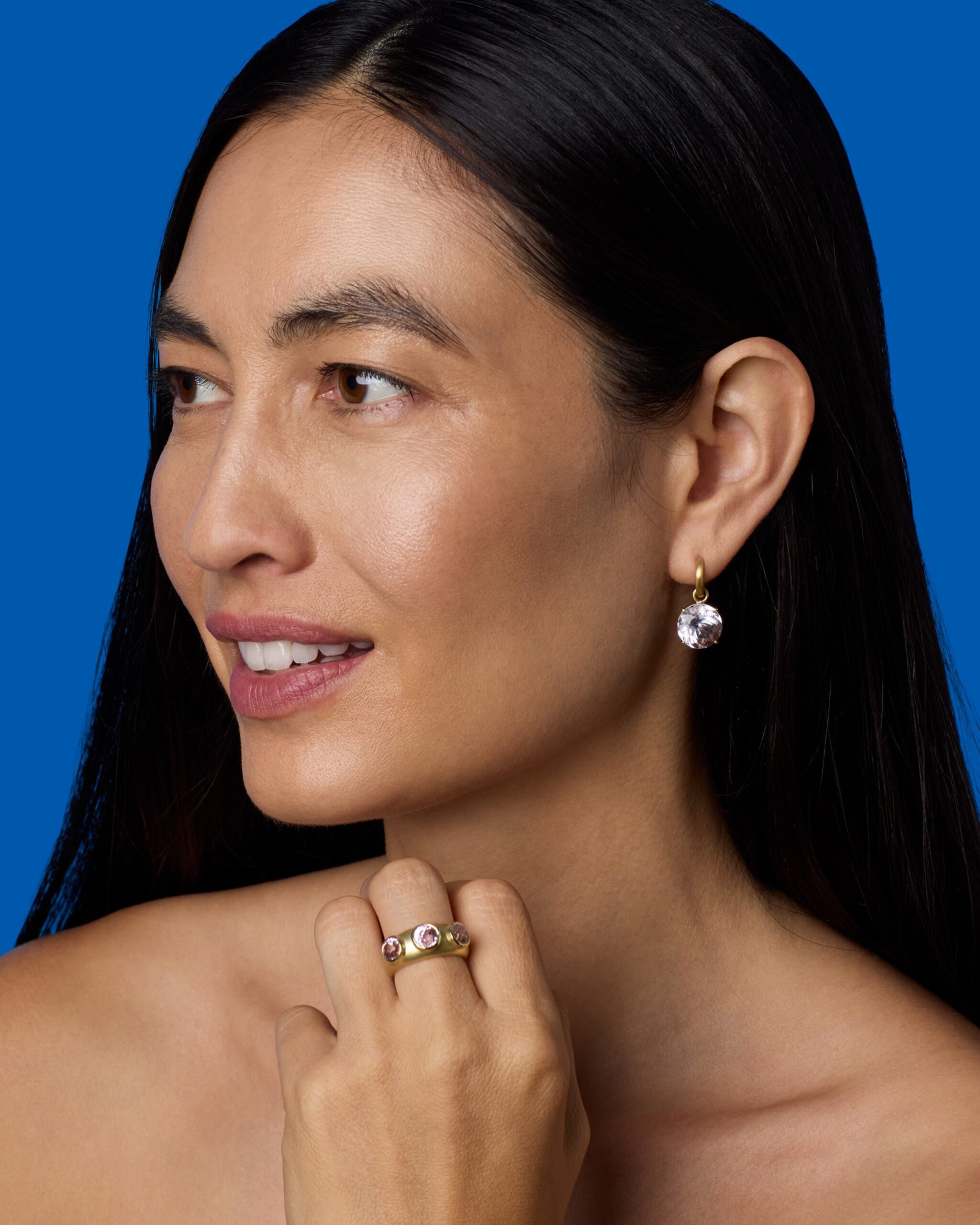 Pair with our One of a Kind Round Three Stone Gemmy Puffed Gold Ring.