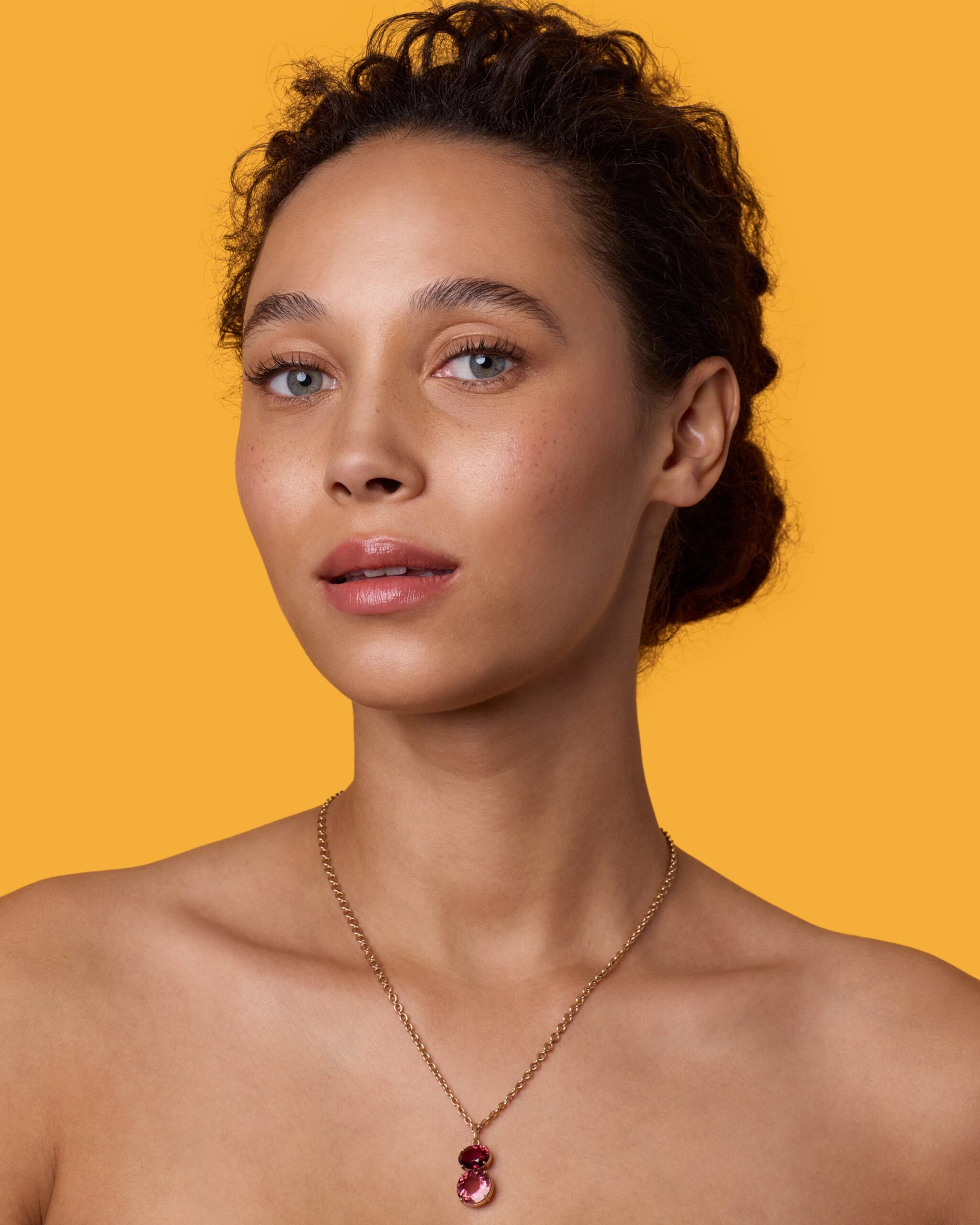 From the Charm Collection, a one of a kind pendant set with varying shades of pink tourmalines stacked in 18k rose gold. Designed to adorn our Signature Oval Link Chain, it is as lovely on its own as it is mixed with other charms.