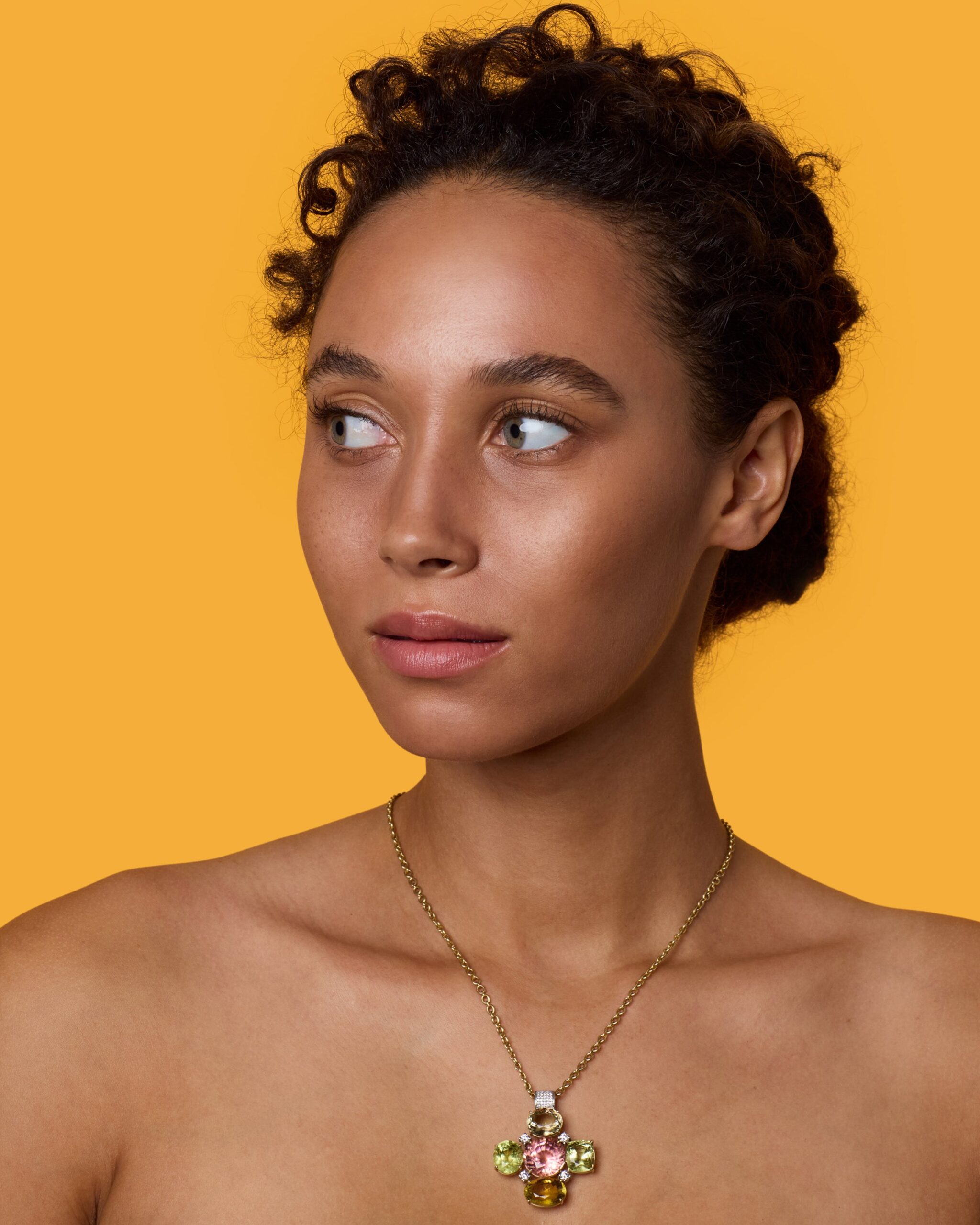 One of a Kind Gemmy Gem Heavy Pavé Bale Mosaic Pendant Necklace