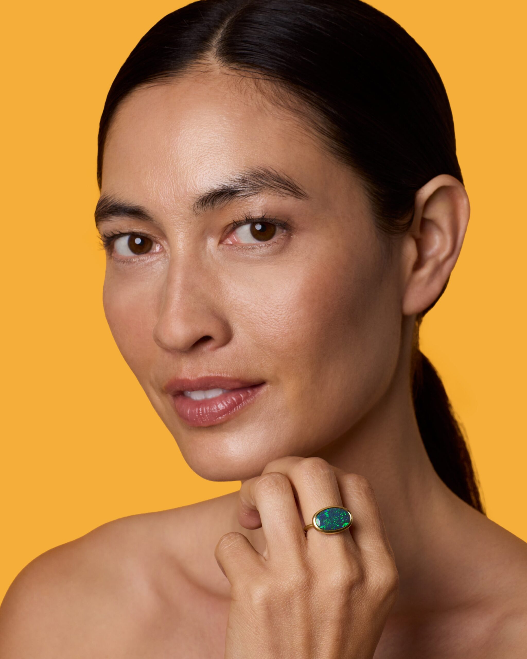 From the One of a Kind Collection, an 18k yellow gold ring bezel set with an oval opal.