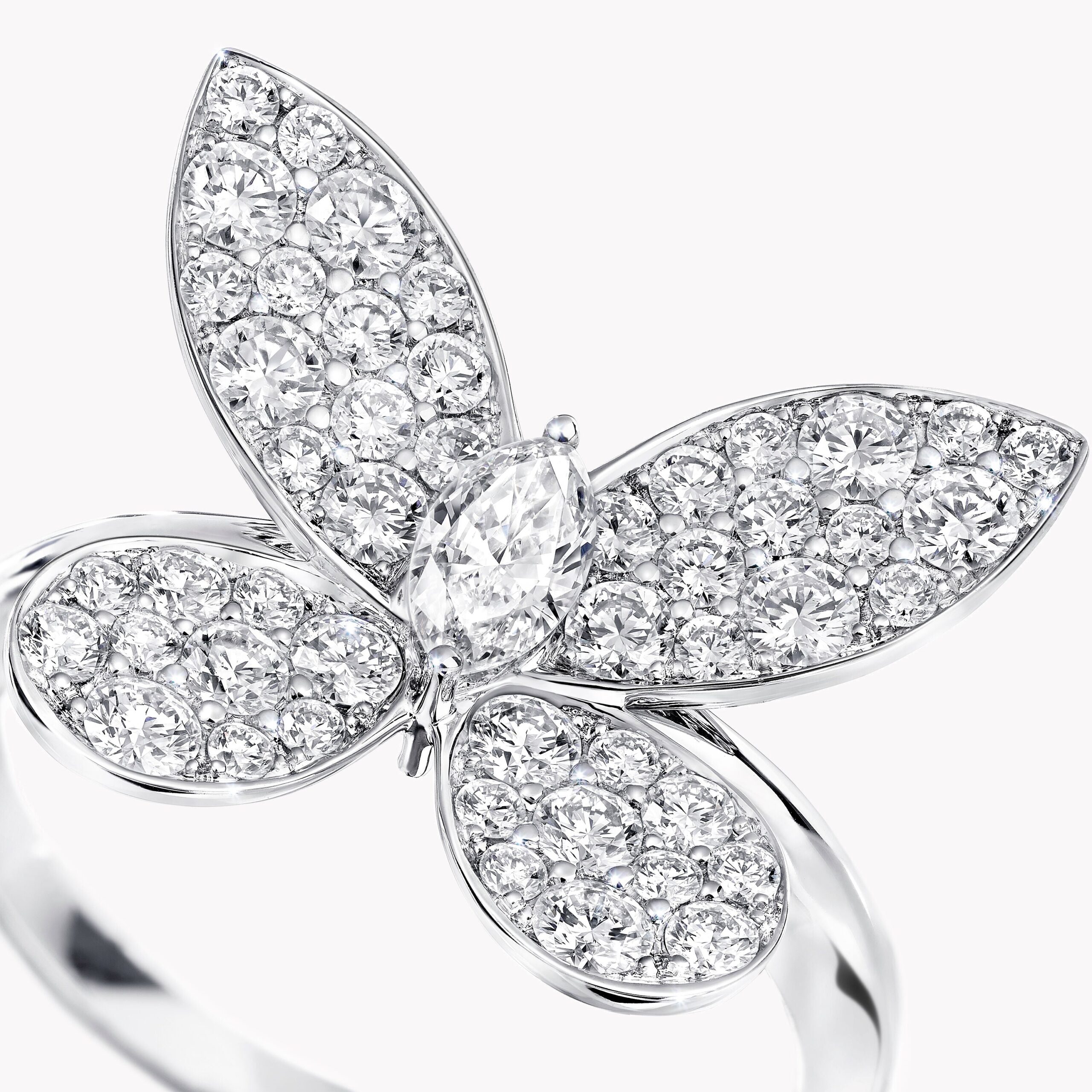 With an elegant marquise diamond at its heart, this mini version of our Pavé Butterfly ring features sculptural wings that are gently angled to create lifelike volume and set with gleaming pavé diamonds. Set upon a delicate white gold band, this delicate jewel is petite enough to wear every day.