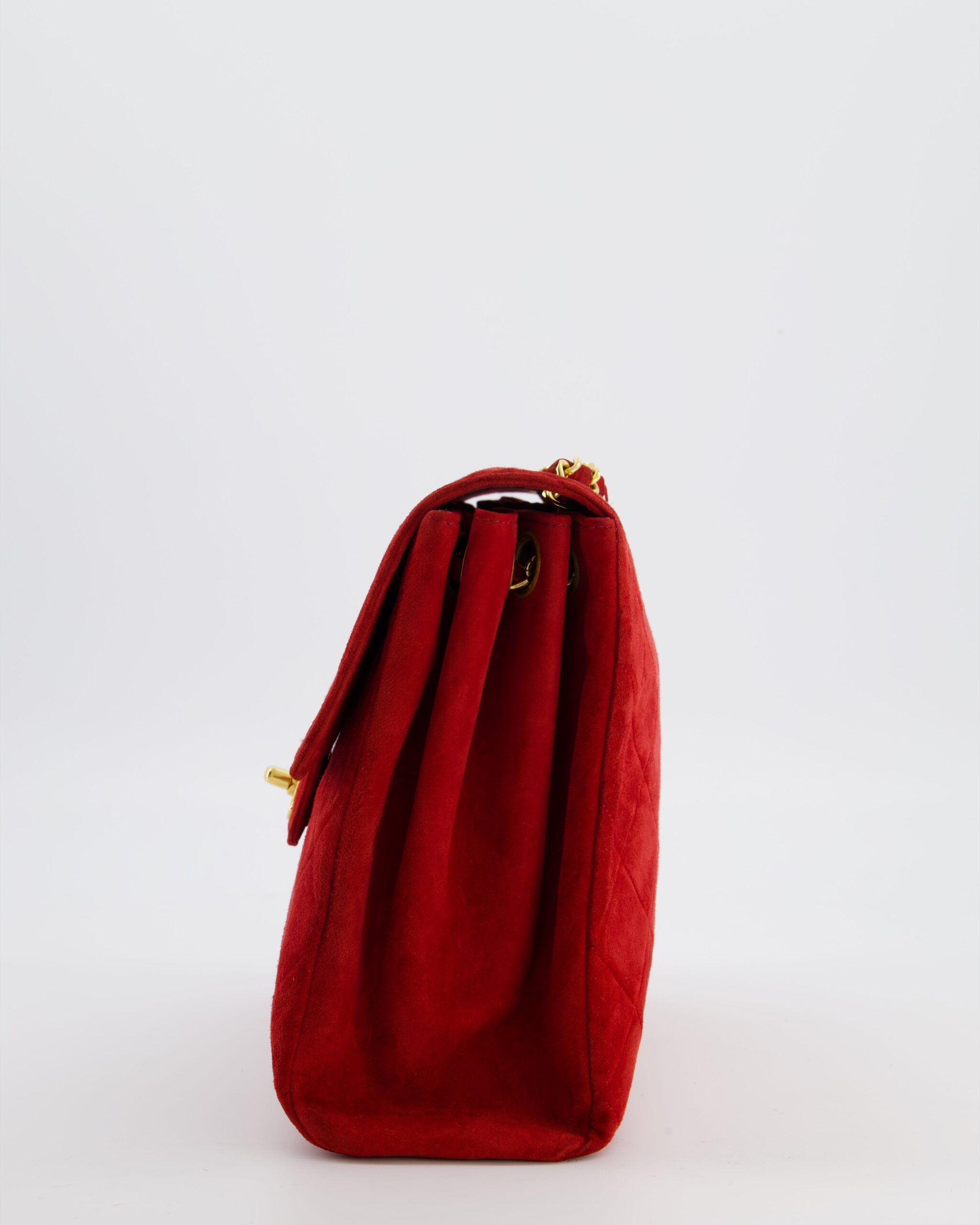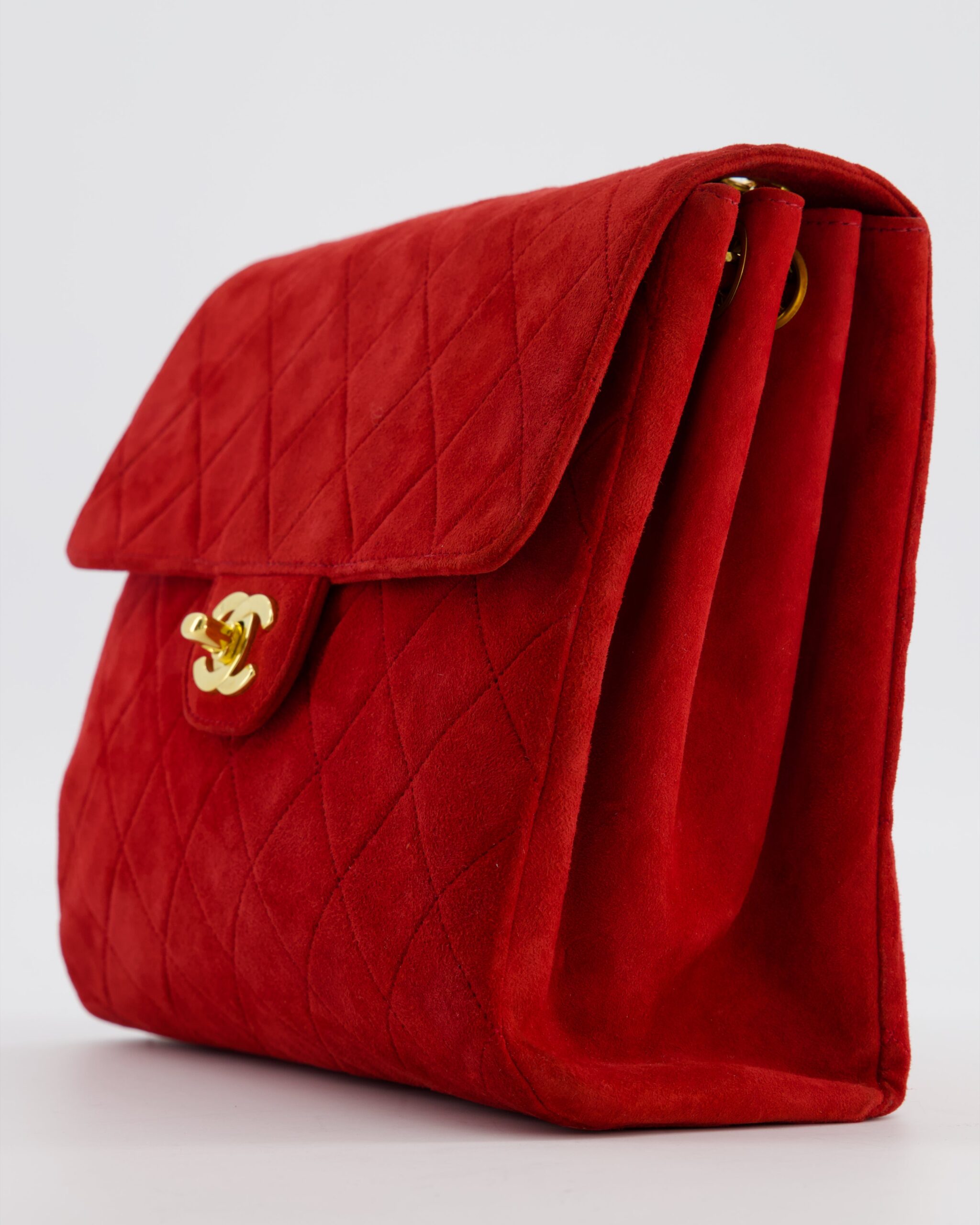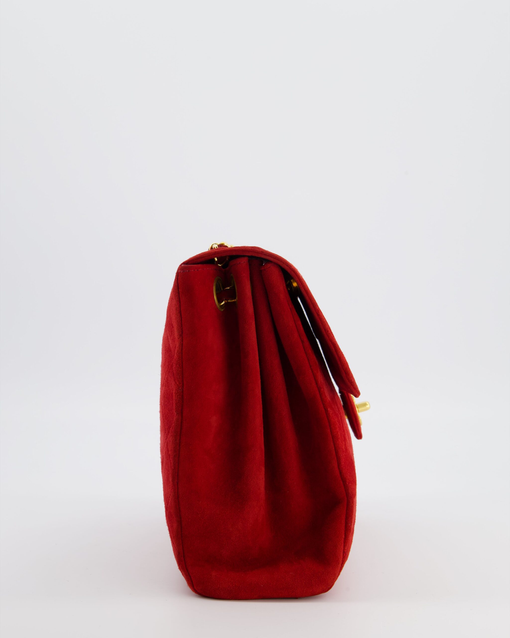 *RARE & HOT* Chanel Red Vintage Quilted Single Flap Shoulder Bag in Suede with 24K Gold Hardware