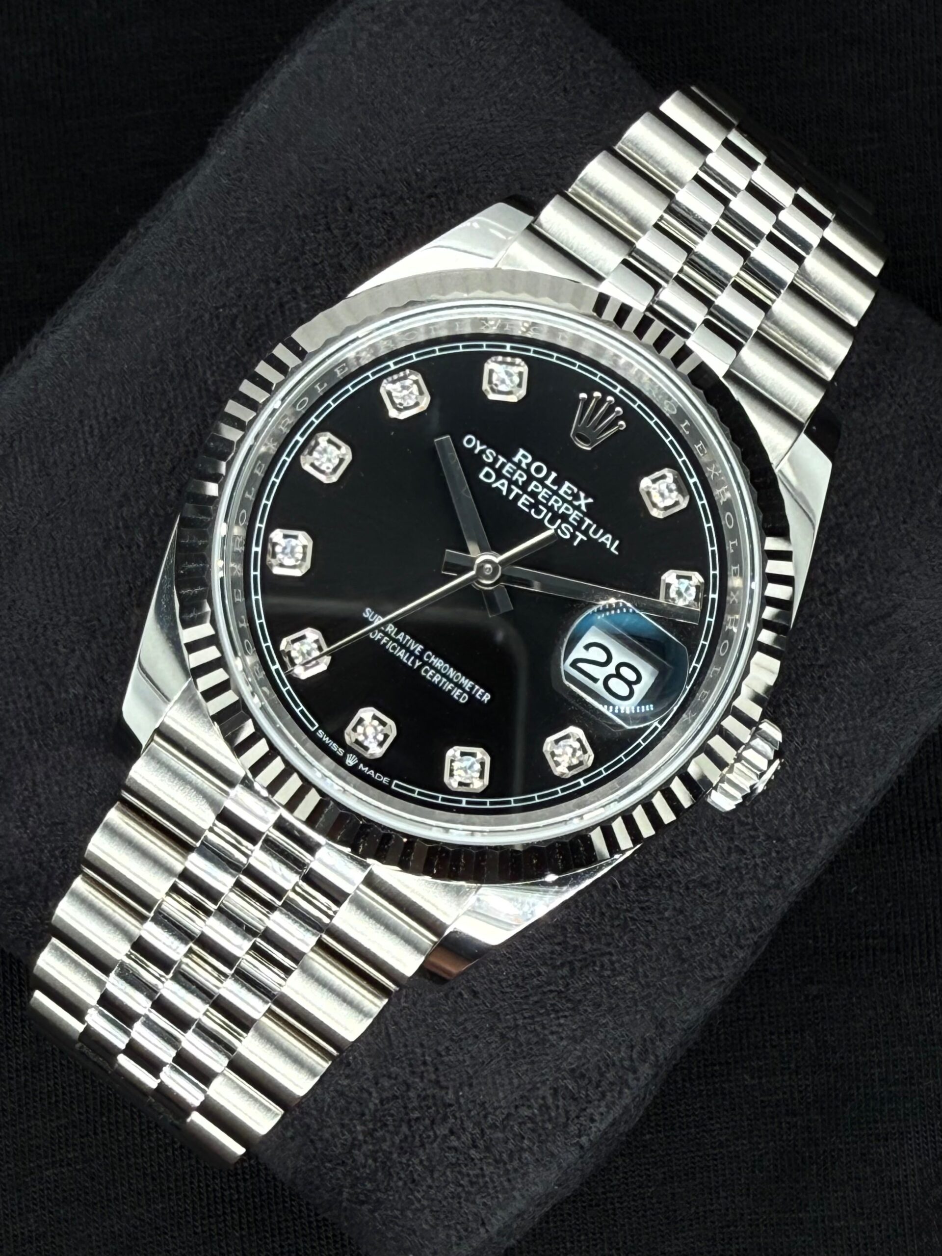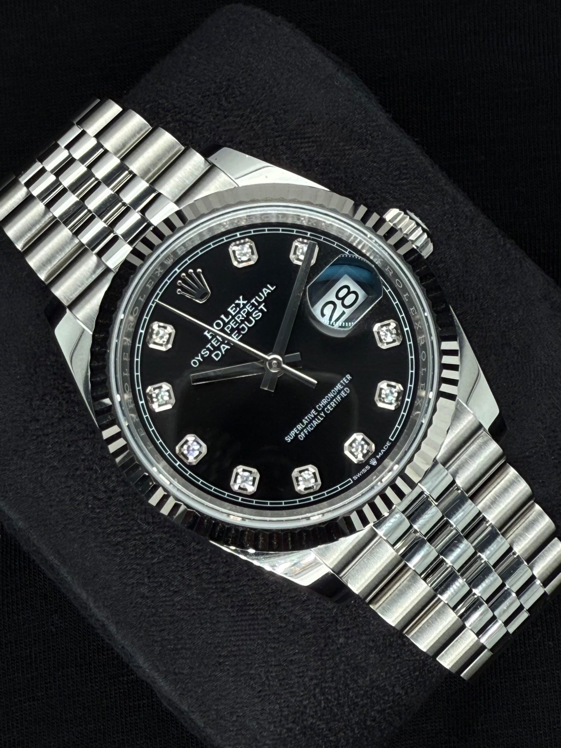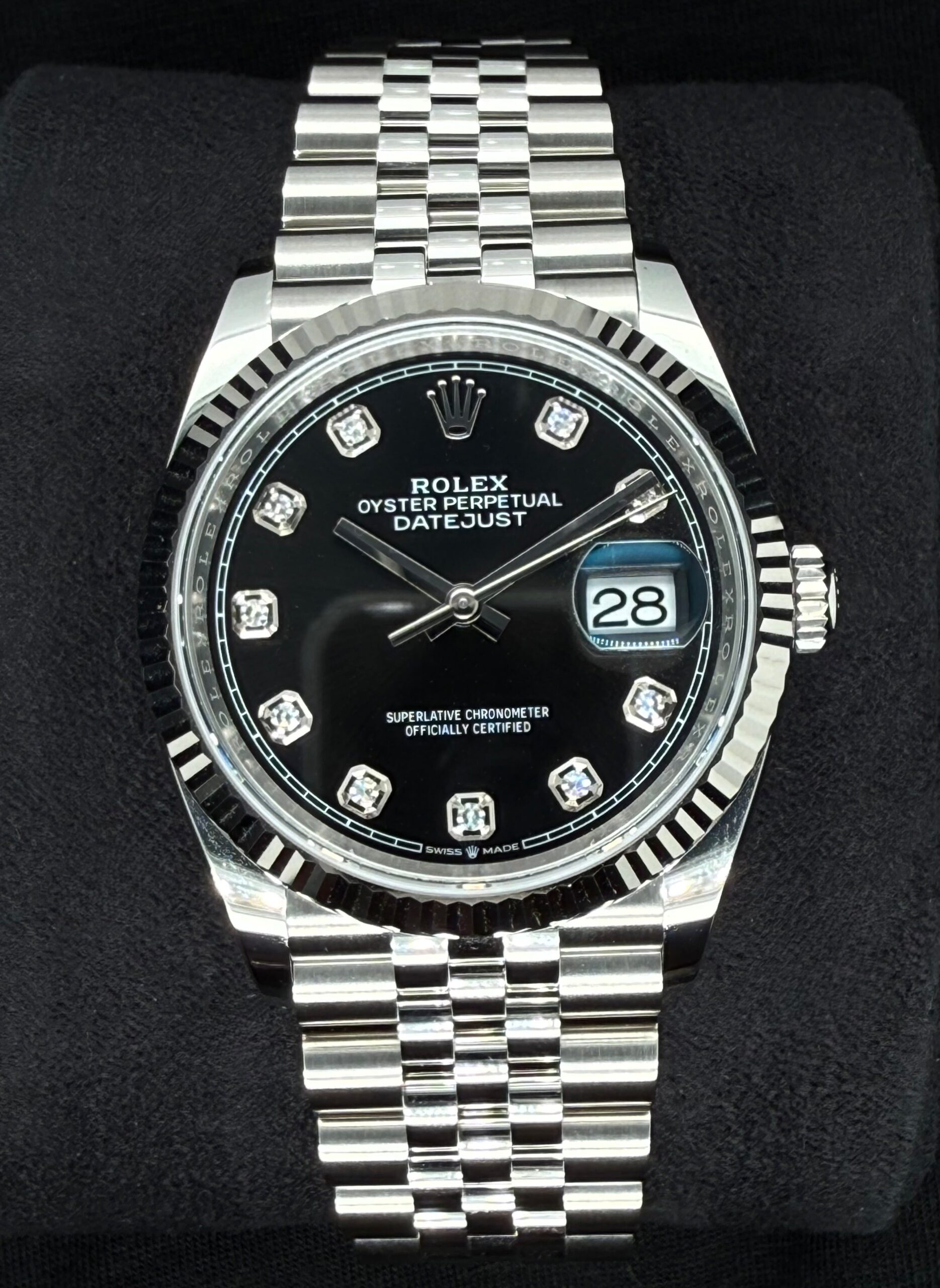 For those seeking enhanced elegance, select models feature diamond-set hour markers or bezels, elevating the Datejust 36 to an opulent statement piece.