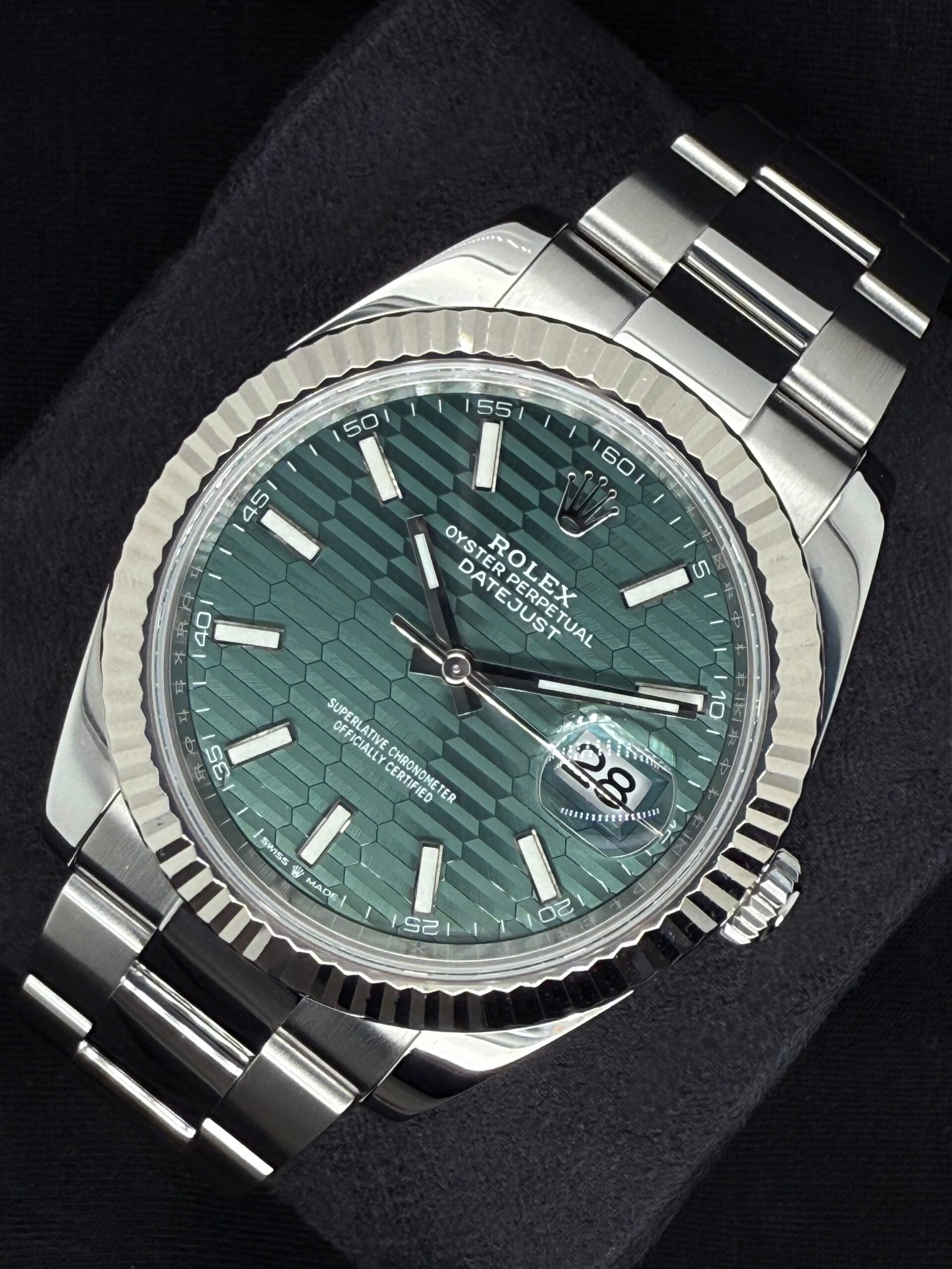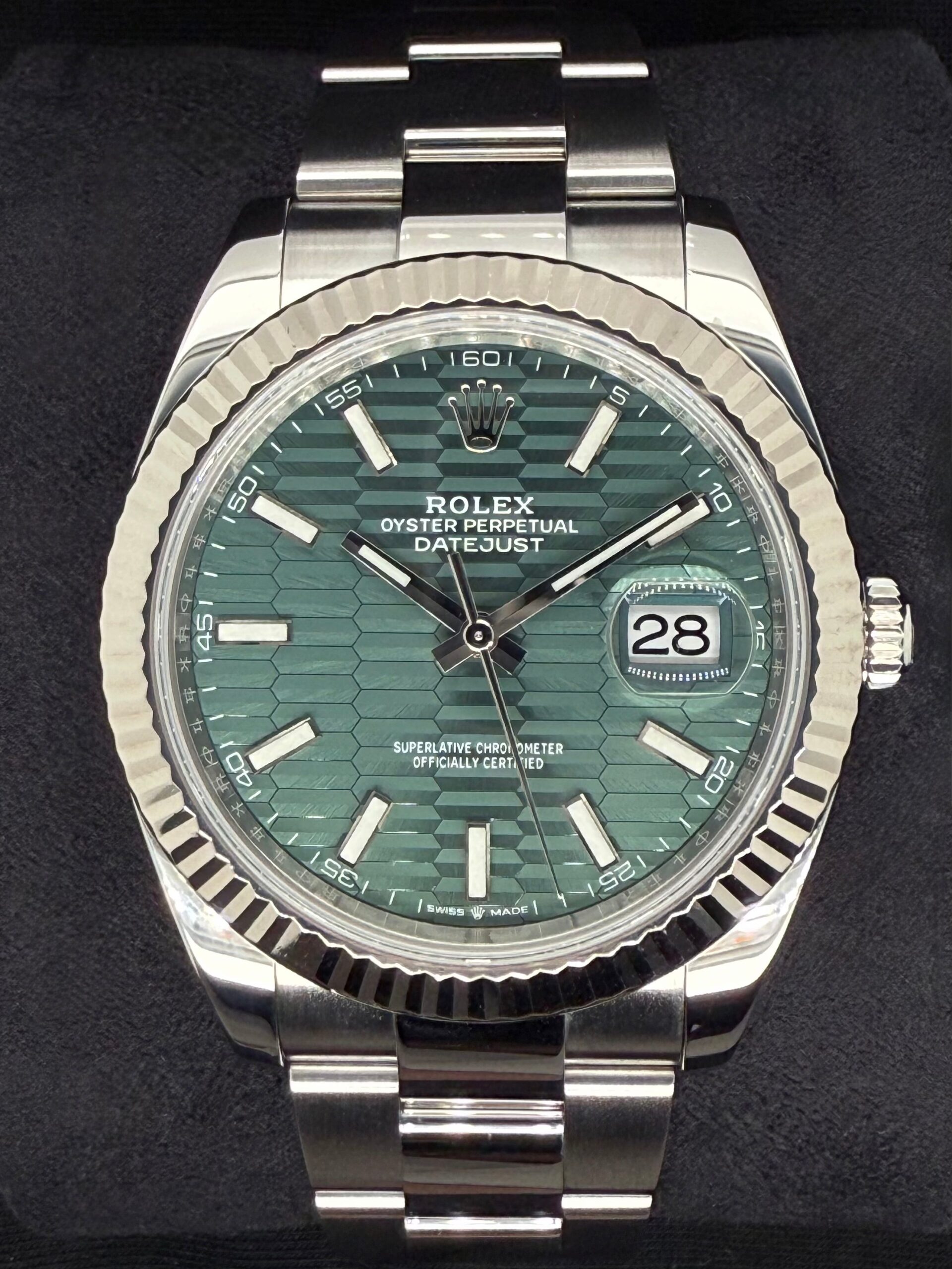 Rolex Datejust 41 Green Motif Dial Fluted Bezel Oystersteel 126334 | 2023 | 41mm