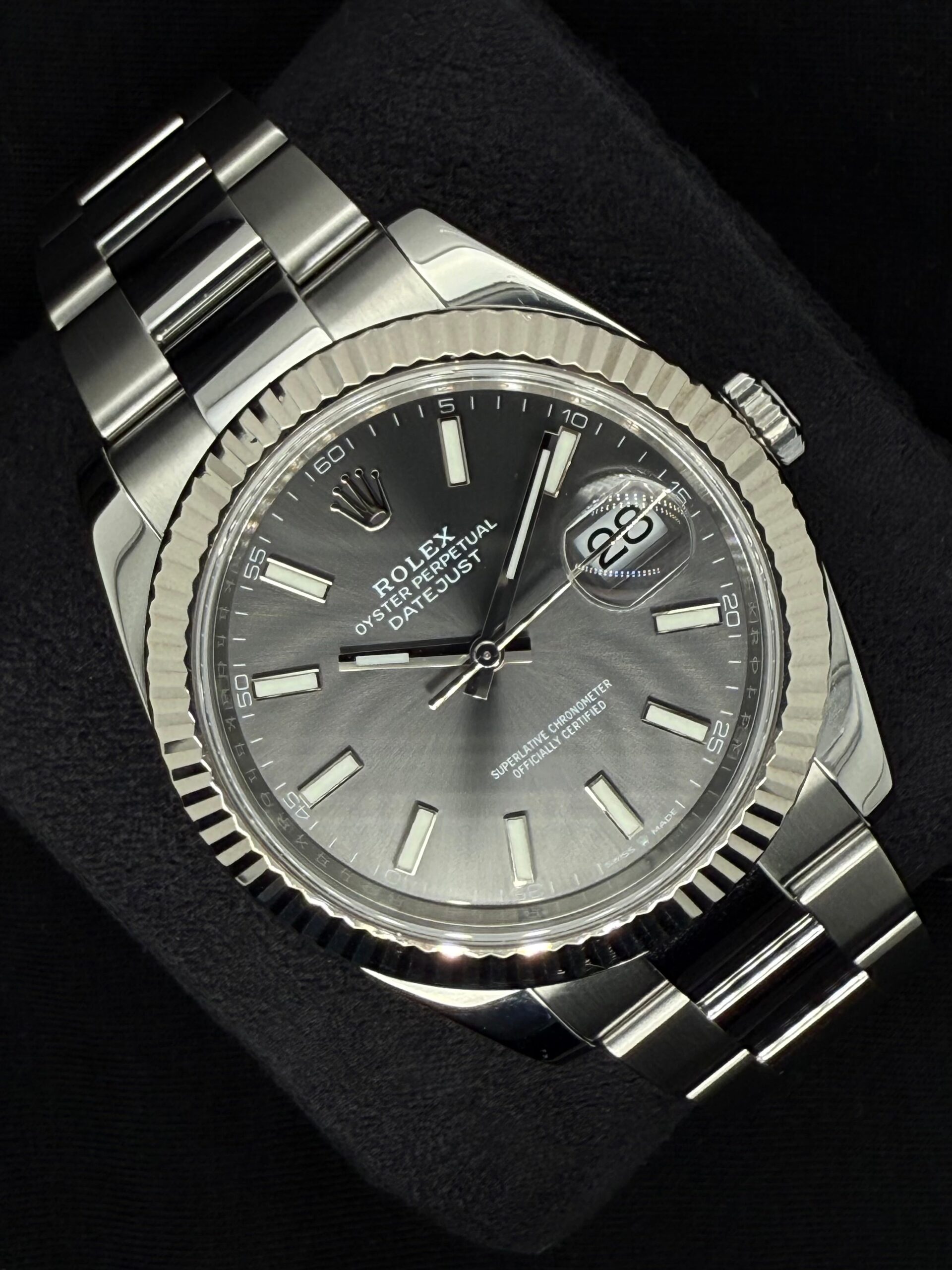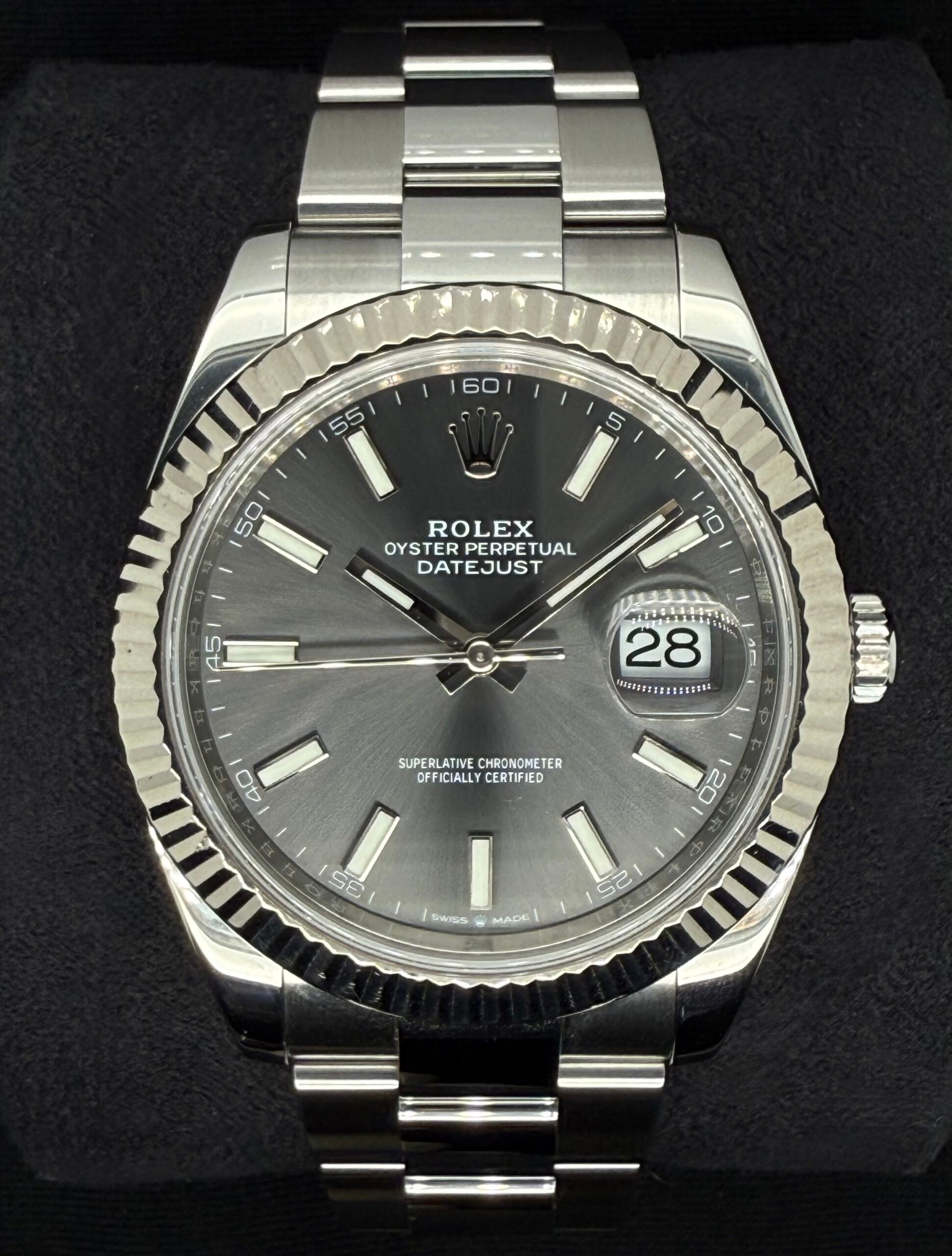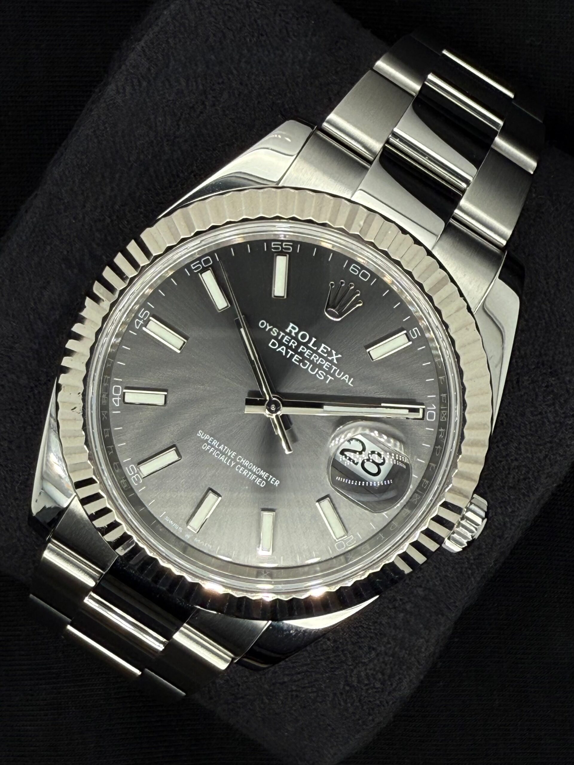 Choose from two bracelet options: the sporty, durable Oyster bracelet or the elegant, five-piece Jubilee bracelet, both equipped with the secure Oysterlock clasp. With water resistance up to 100 metres, the Datejust 41 is both practical and stylish, perfect for any occasion.