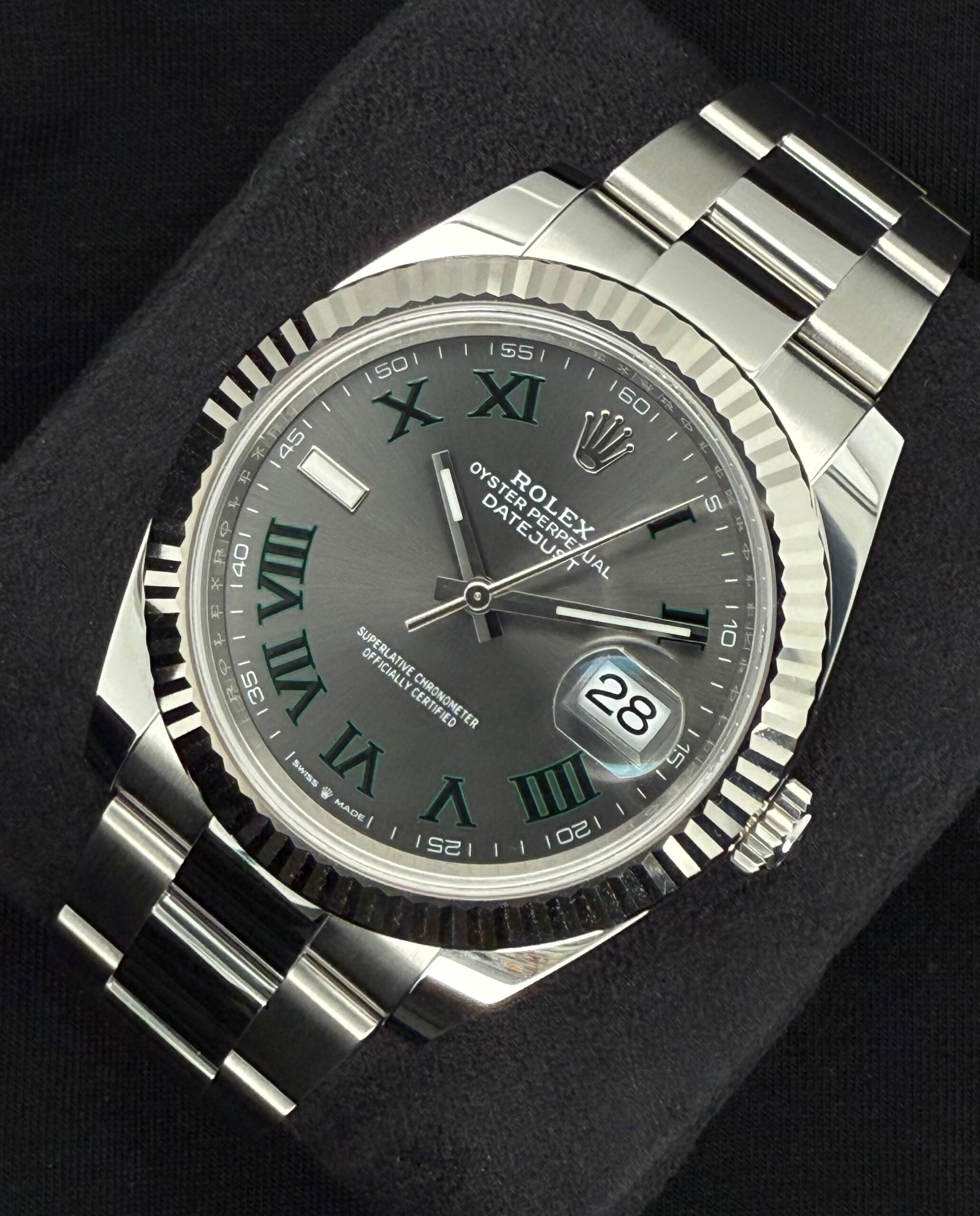 Choose from two bracelet options: the sporty, durable Oyster bracelet or the elegant, five-piece Jubilee bracelet, both equipped with the secure Oysterlock clasp. With water resistance up to 100 metres, the Datejust 41 is both practical and stylish, perfect for any occasion.