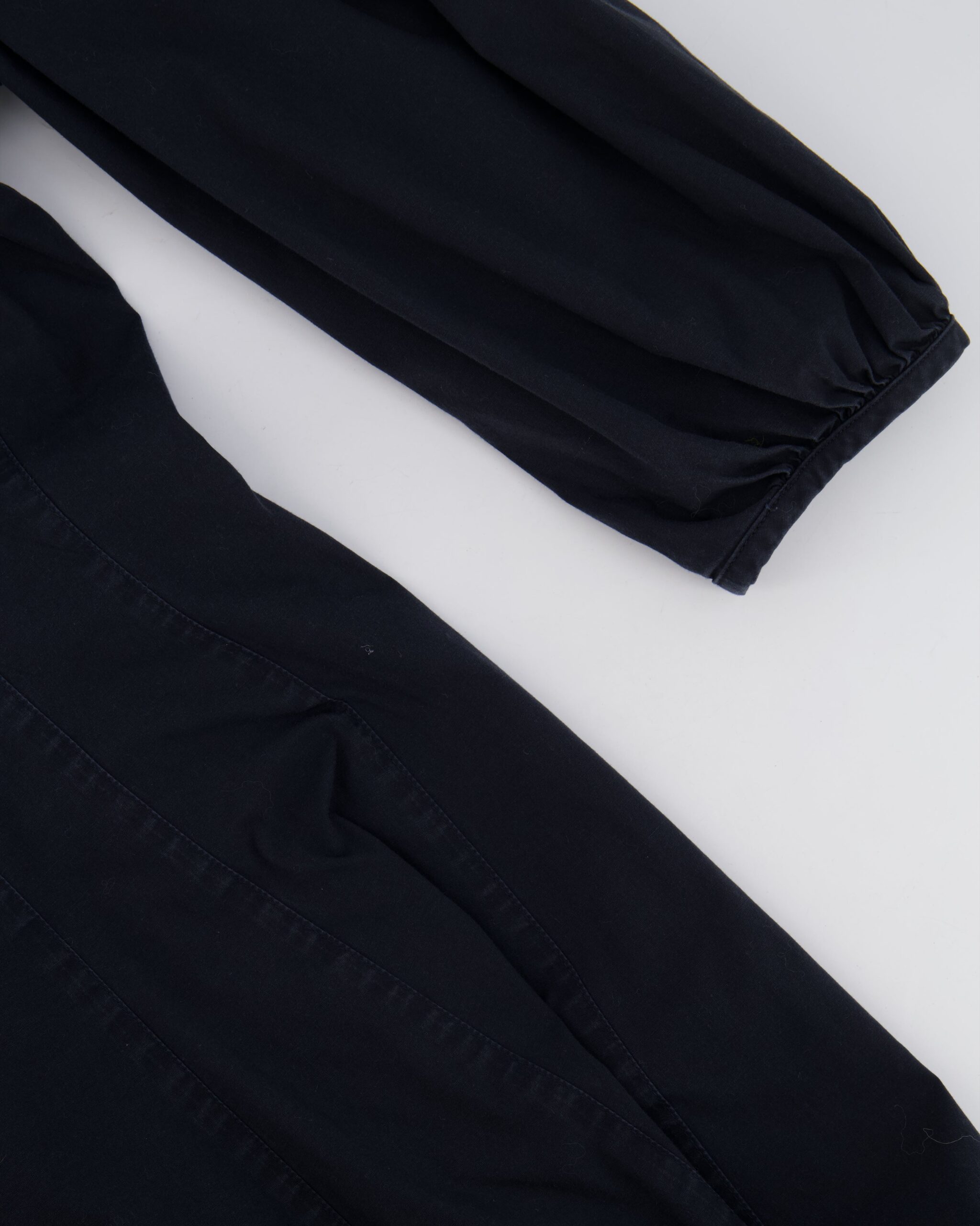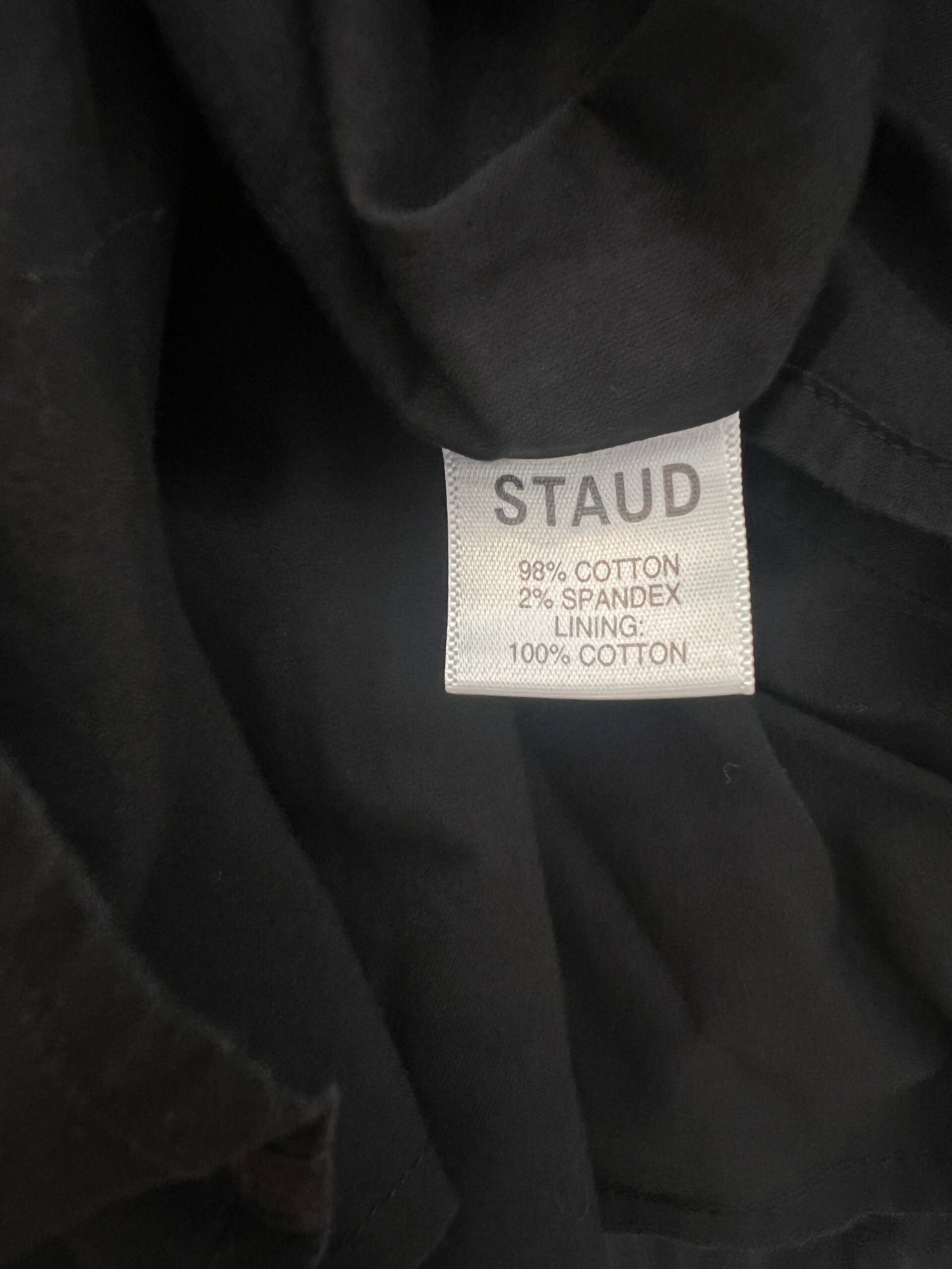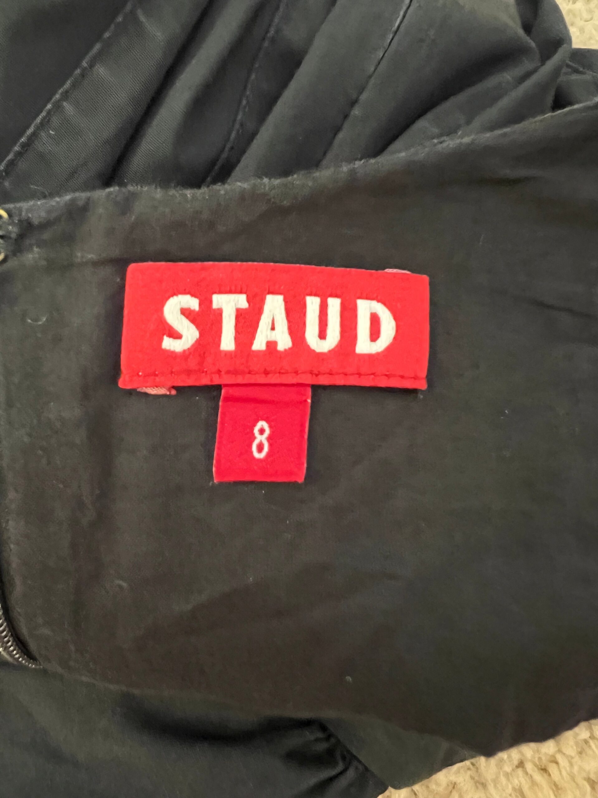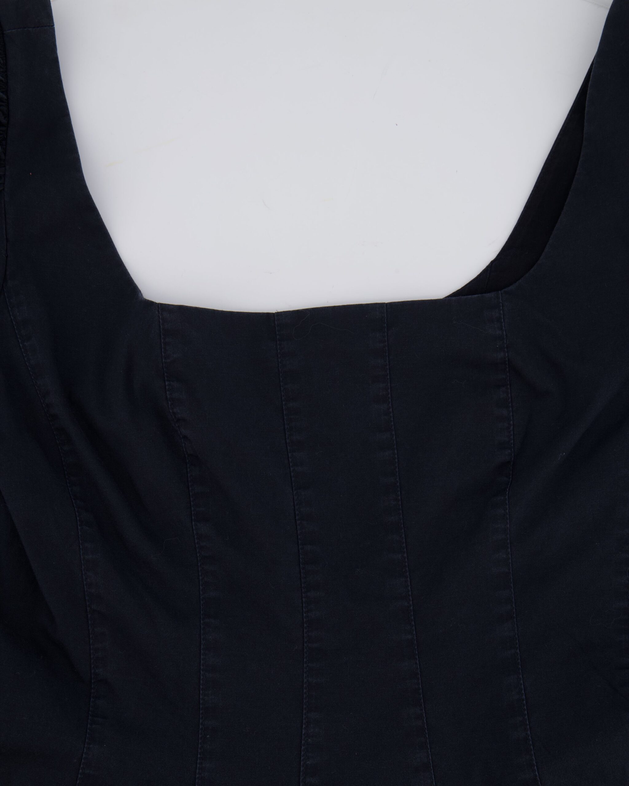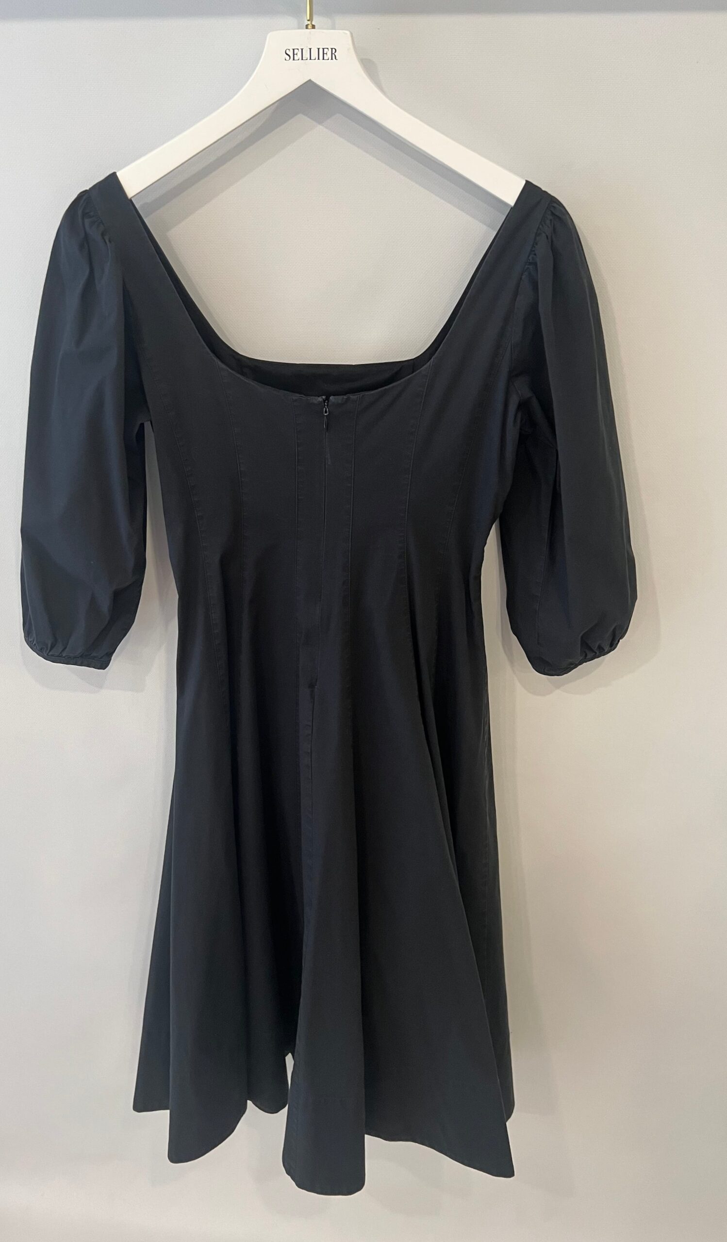 Staud Black Midi Dress with Square Neckline Detail and Puff Sleeves Size US 8 (UK 12)