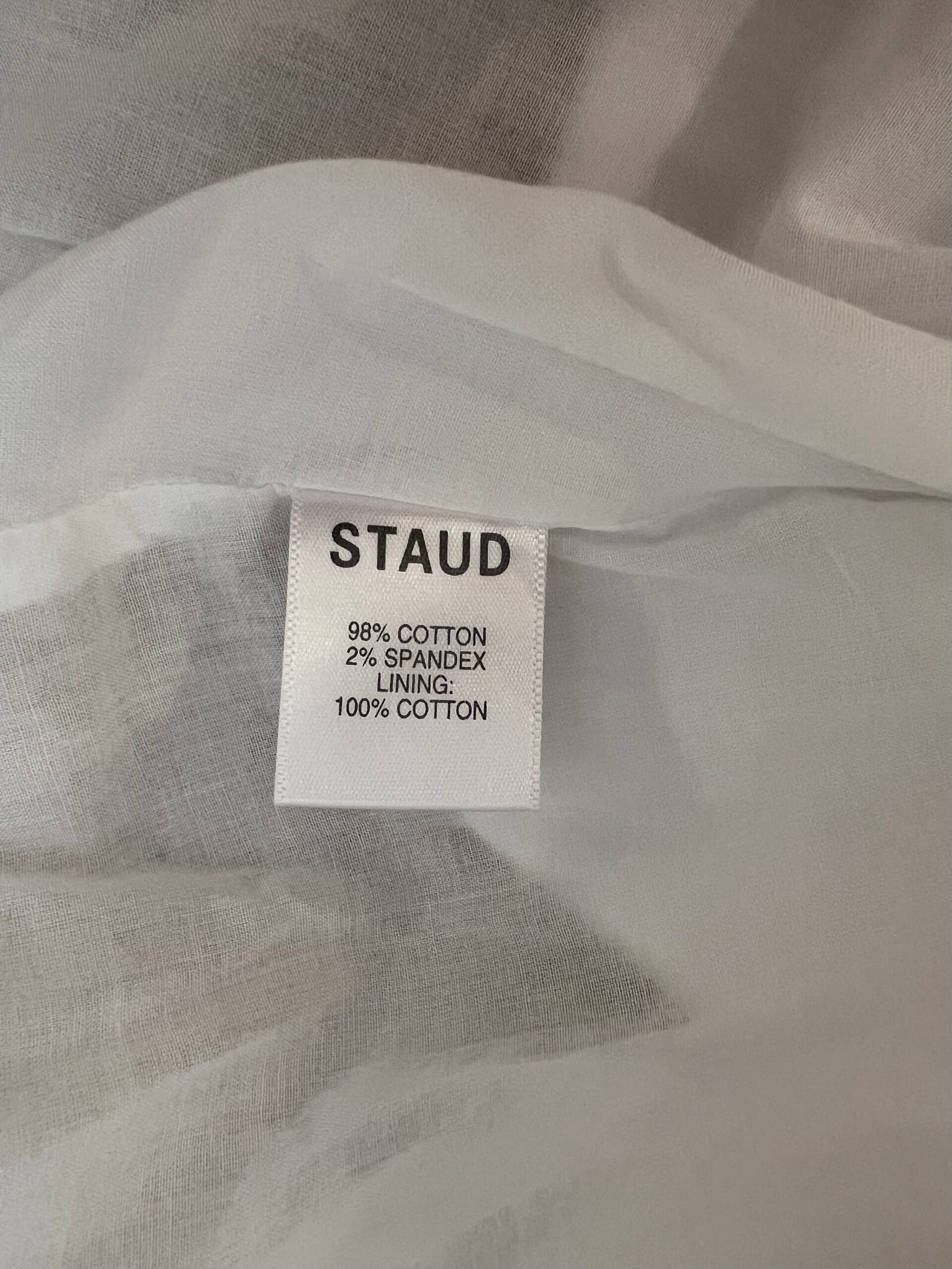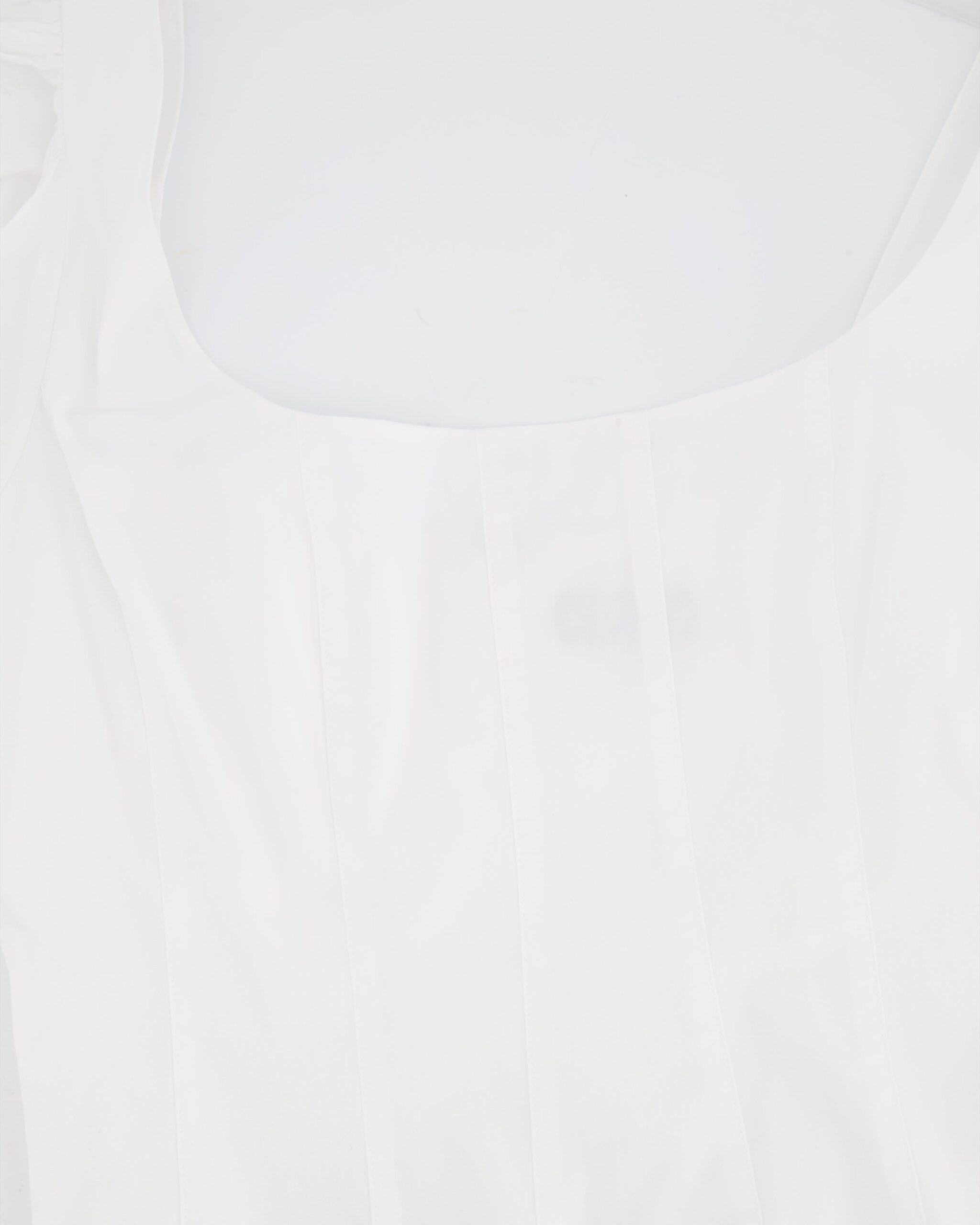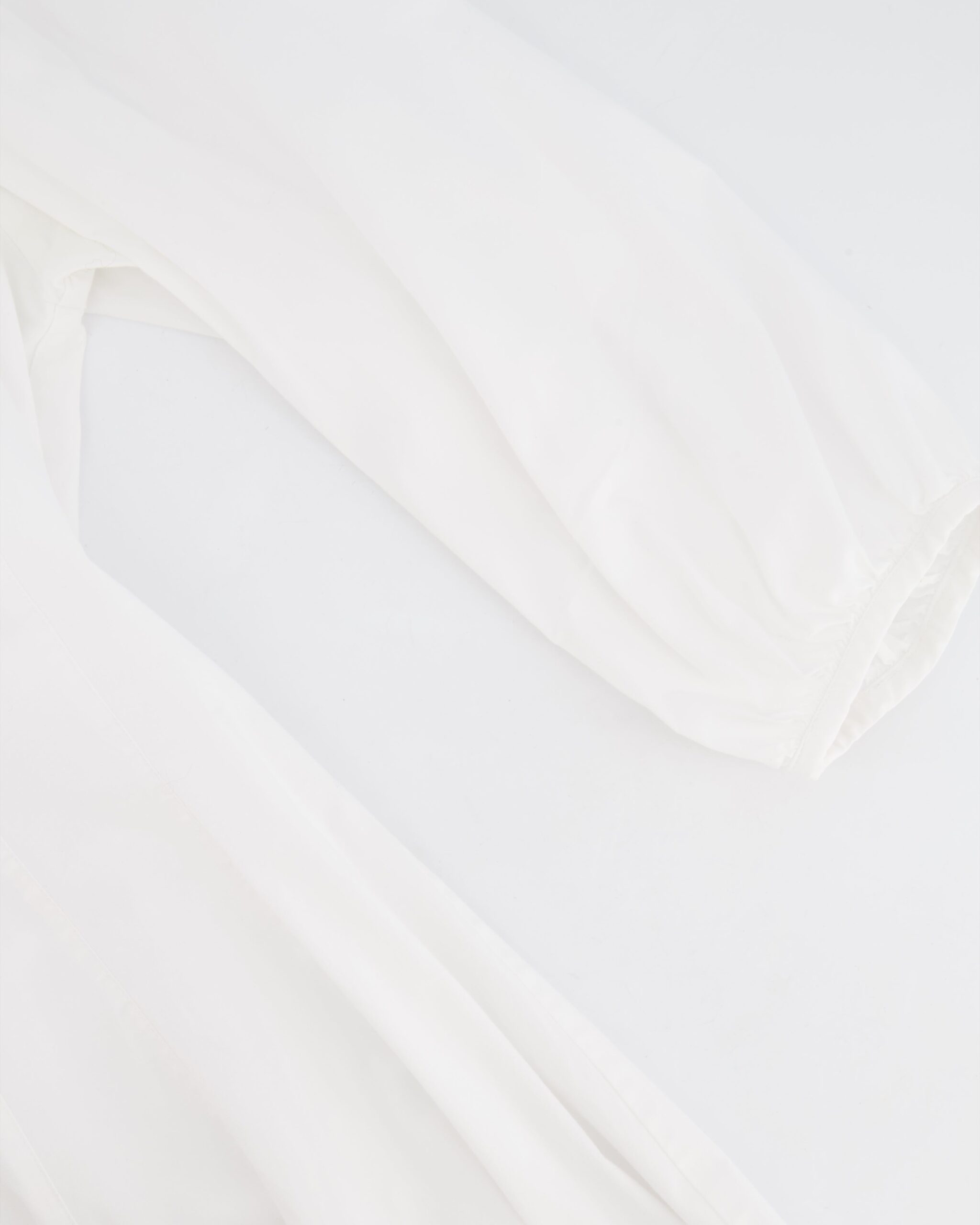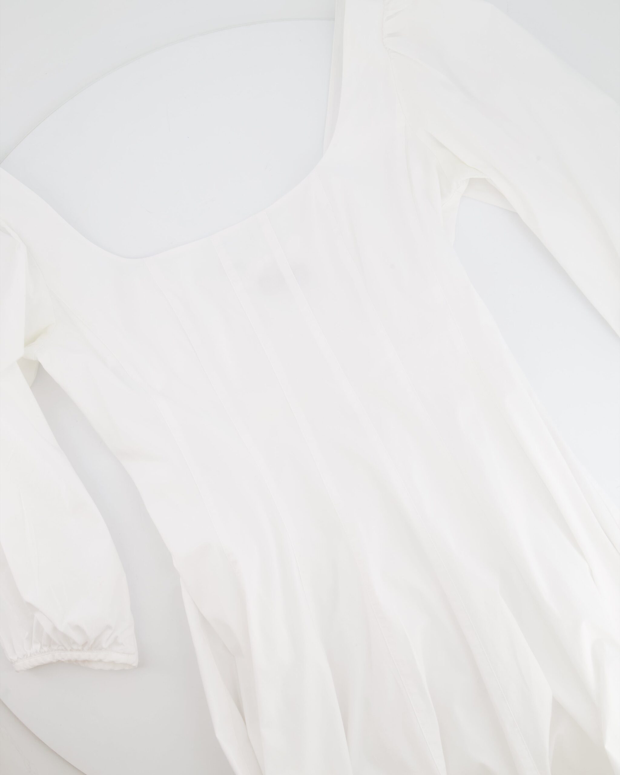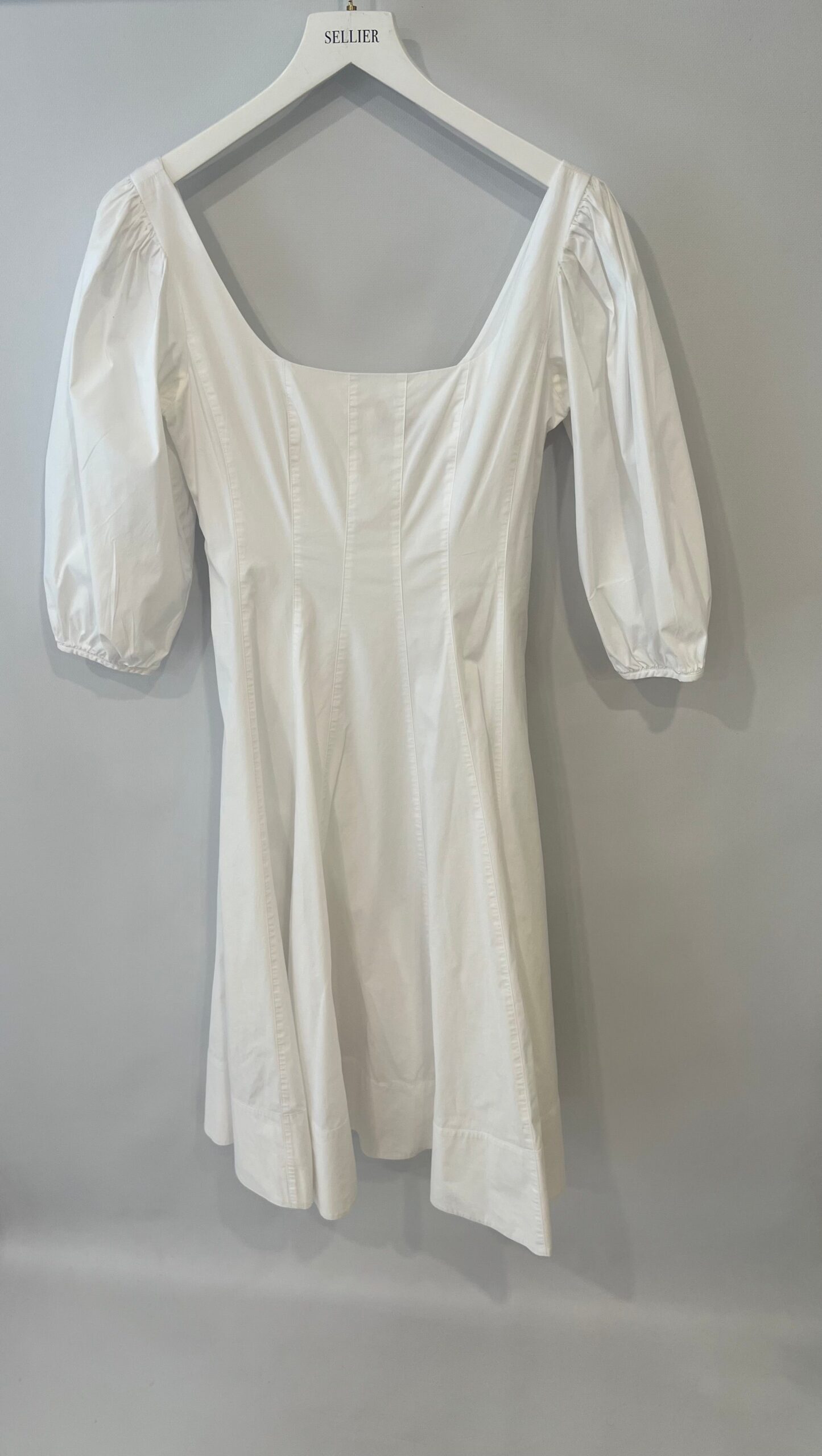 Staud White Midi Dress with Square Neckline Detail and Puff Sleeves Size US 8 (UK 12)