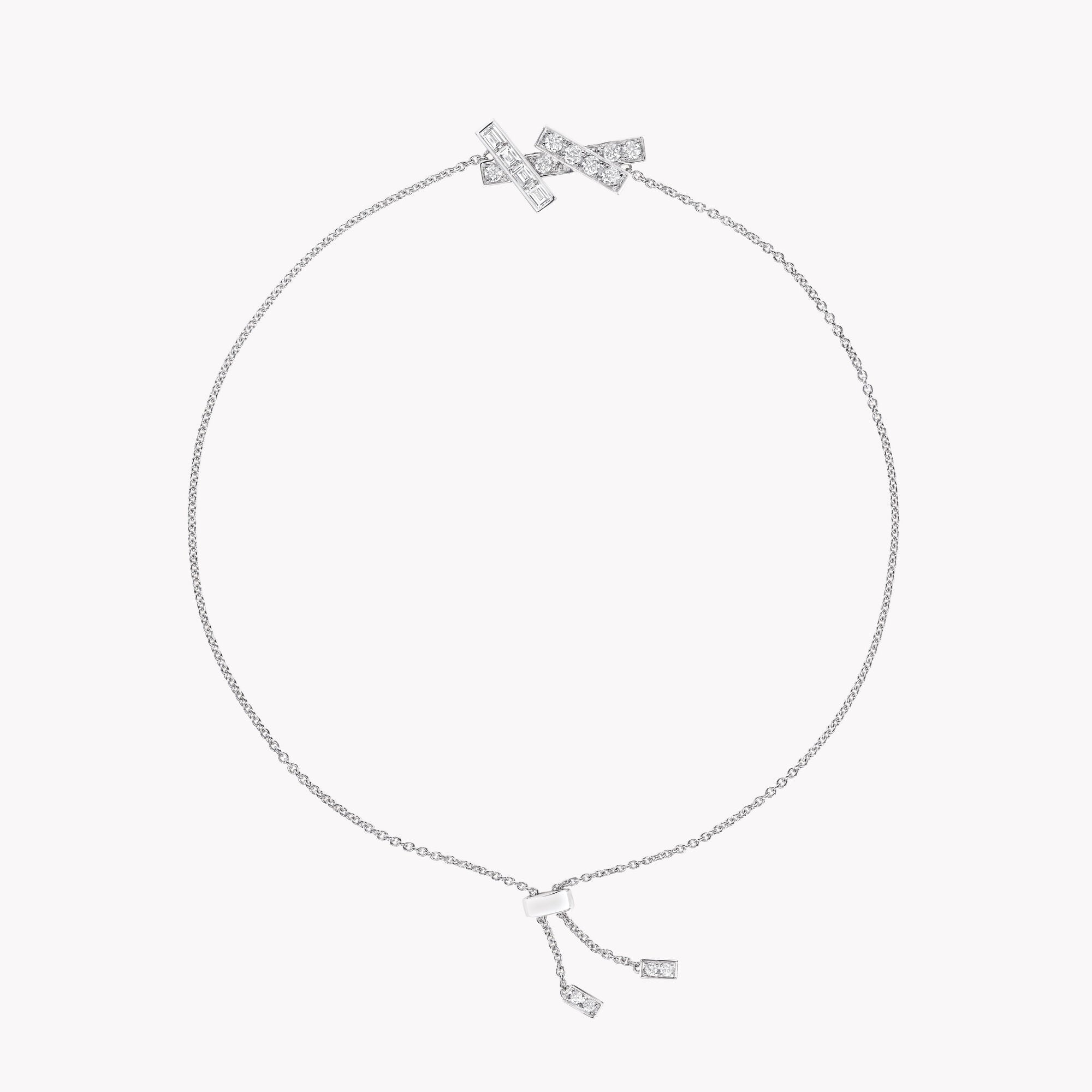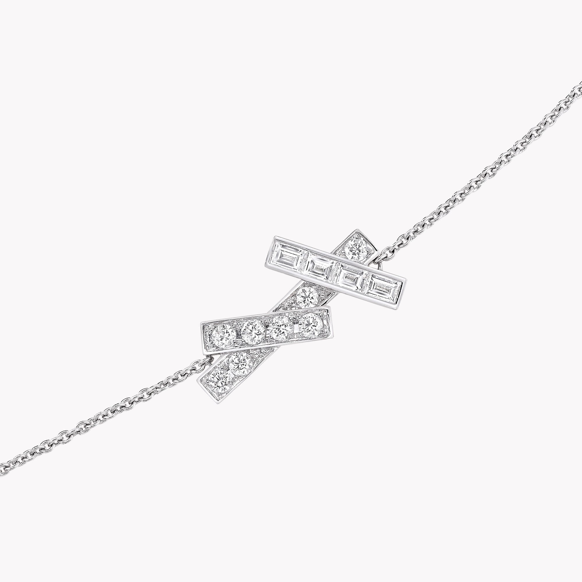Evoking a geometric elegance that is beautifully asymmetric, delicate rows of baguette cut and pavé diamonds intersect upon our mini Threads bracelet in white gold. A motif with contemporary symbolism, the criss-crossing threads represent the meaningful connections we share with others and nurture in ourselves.