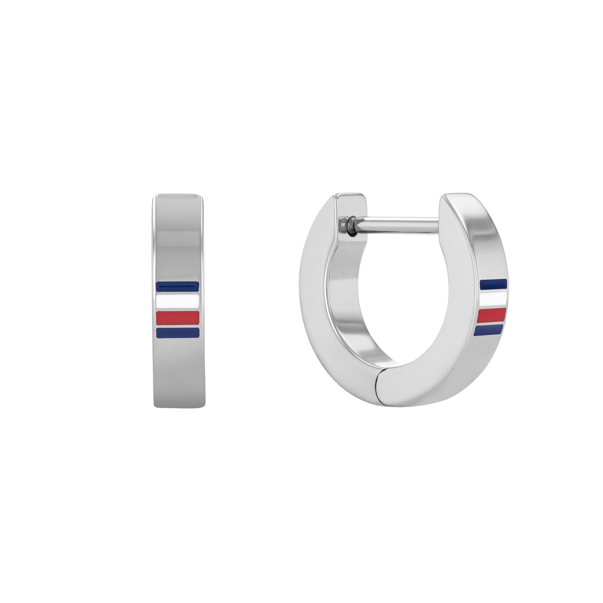 Each hoop is decorated with the brand’s iconic tricolour flag logo.