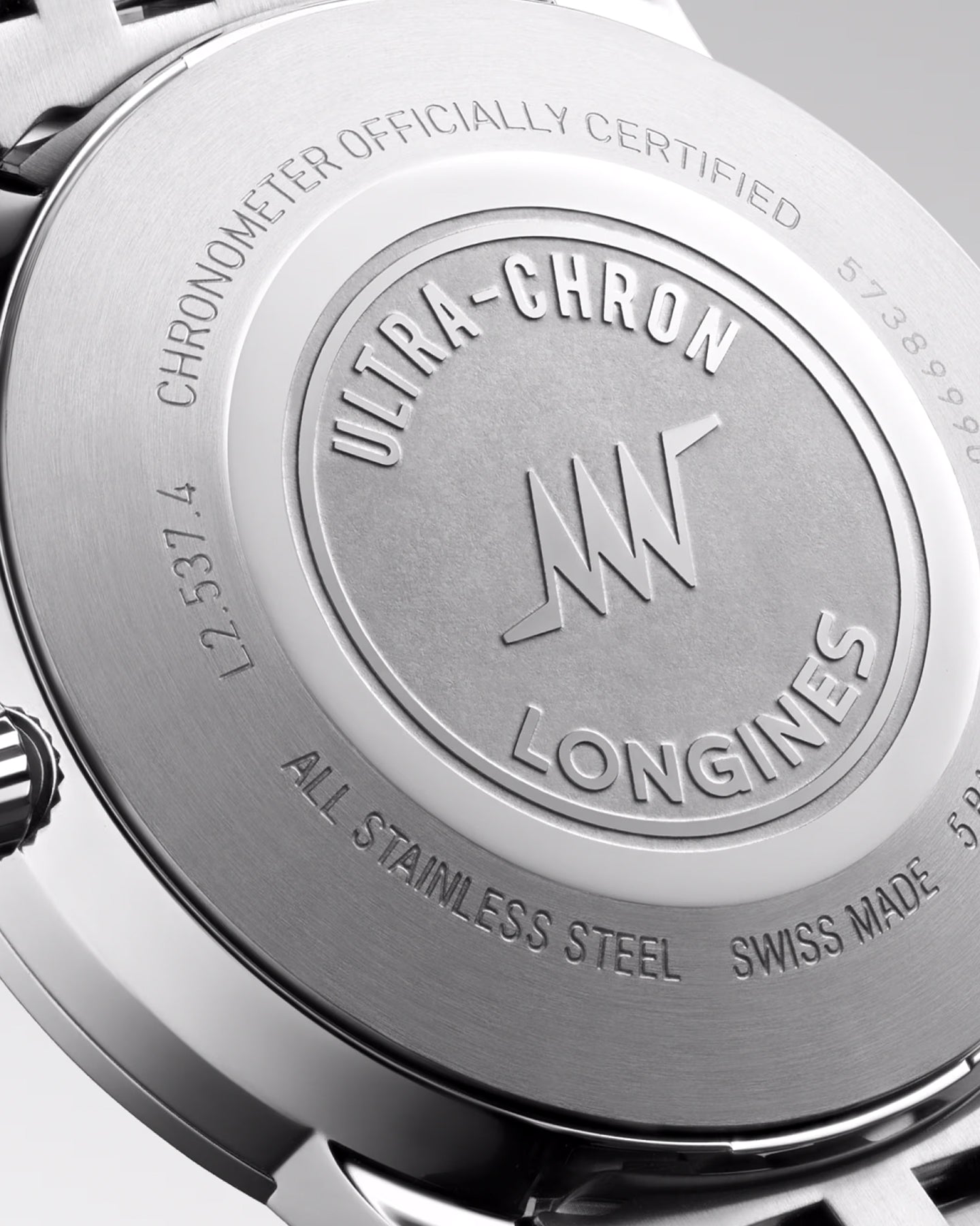 Date, self winding mechanical movement beating at 36’000 vibrations per hour, with a monocrystalline silicon balance-spring power reserve up to 52 hours. Water-resistant to 5 bar, scratch-resistant sapphire crystal, with several layers of anti-reflective coating on both sides.